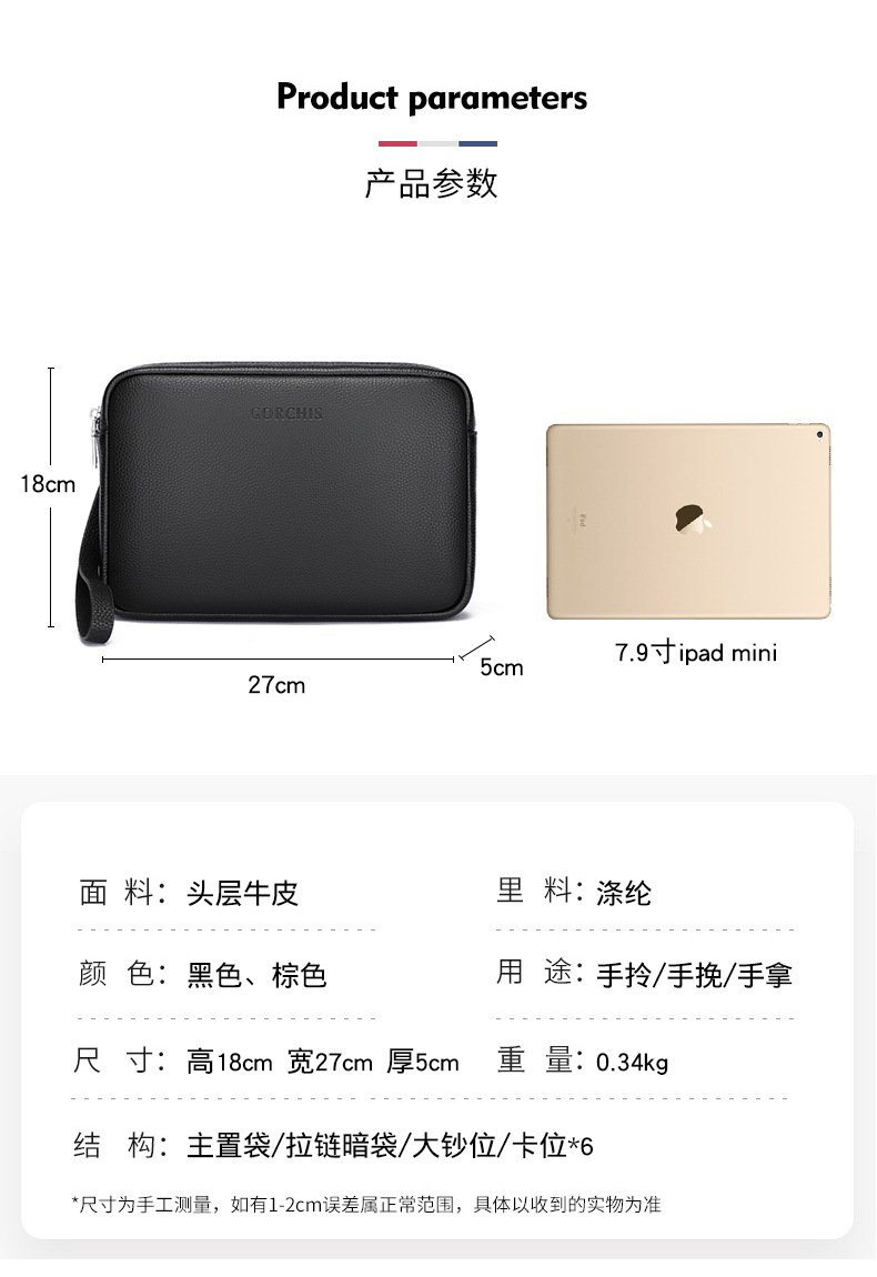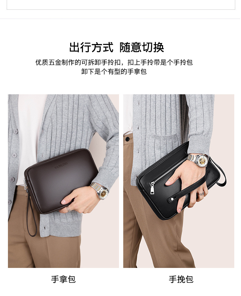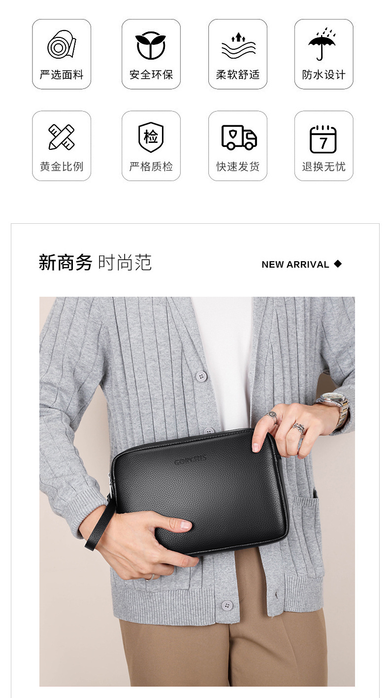 Chiếc túi cầm tay nam mới này được làm từ chất liệu da mềm tự nhiên, mang đến cảm giác cầm nắm dễ chịu. Thiết kế dung tích rộng rãi, dễ dàng đựng vừa các vật dụng cá nhân cần thiết như điện thoại, ví, chìa khóa. Kiểu dáng phù hợp cho cả công việc và những lúc thư giãn. Bạn chỉ cần cầm trên tay hoặc kẹp dưới cánh tay là có thể sử dụng một cách thuận tiện. | Tên sản phẩm: Ví Bóp Cầm Tay Nam Chất Liệu Da Bò - Túi Xách Ví Nam | Mã sản phẩm: A4669 - Giá: 580.000đ | Mã nhà sản xuất: BADG-G01Hình ảnh sản phẩm