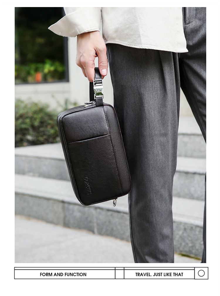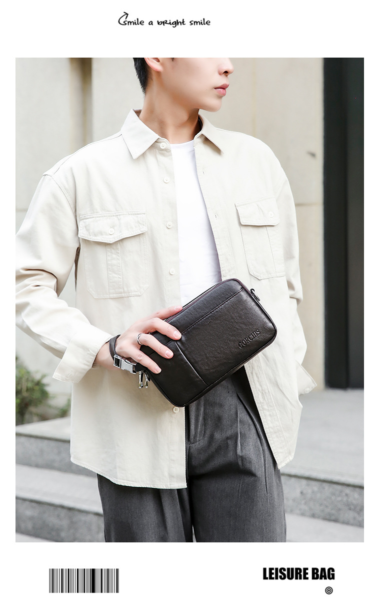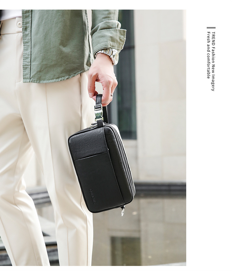 Chiếc túi nhỏ này dành cho nam giới, kết hợp giữa phong cách công sở và thư giãn. Thiết kế có nhiều ngăn túi tiện lợi, giúp bạn sắp xếp các vật dụng cá nhân như điện thoại, ví, chìa khóa một cách gọn gàng. Bạn có thể cầm tay hoặc mang v một cách linh hoạt. Sản phẩm phù hợp cho nhiều hoàn cảnh sử dụng khác nhau, từ làm việc đến những dịp sinh hoạt hằng ngày. | Tên sản phẩm: Ví Bóp Cầm Tay Nam - Túi Xách Ví Nam | Mã sản phẩm: A4681 - Giá: 620.000đ | Mã nhà sản xuất: BADG-G02Hình ảnh sản phẩm