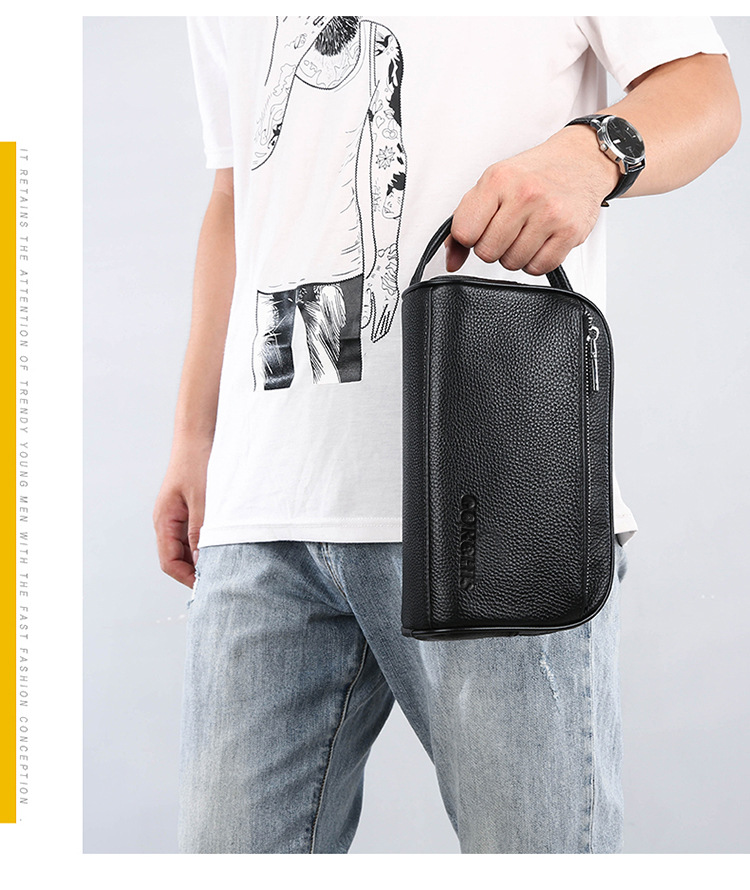 Chiếc túi cầm tay dành cho nam, được làm từ chất liệu da bò mềm mại và bền bỉ. Kiểu dáng hiện đại, phù hợp cho cả những dịp thư giãn và công việc. Thiết kế rộng rãi bên trong giúp bạn dễ dàng sắp xếp các vật dụng cá nhân như điện thoại, ví và giấy tờ. Chỉ cần cầm trên tay hoặc kẹp dưới cánh tay, bạn đã có một phong cách lịch sự và gọn gàng. | Tên sản phẩm: Ví Bóp Cầm Tay Nam Chất Liệu Da Bò - Túi Xách Ví Nam | Mã sản phẩm: A4695 - Giá: 720.000đ | Mã nhà sản xuất: BADG-G02Hình ảnh sản phẩm