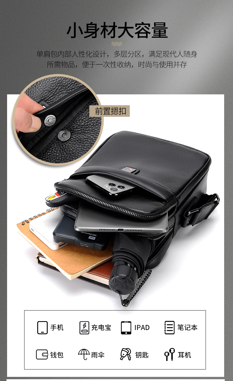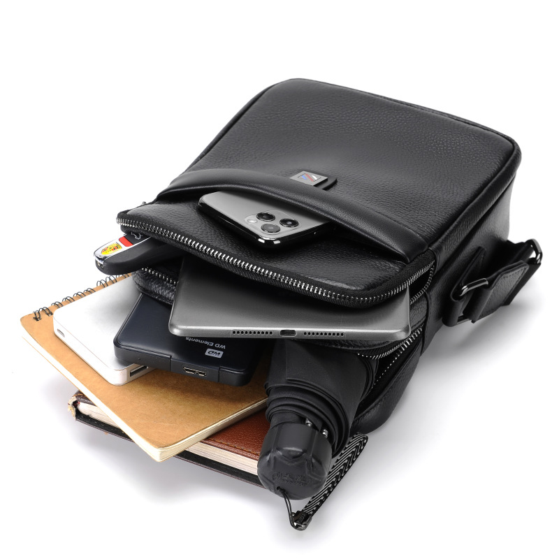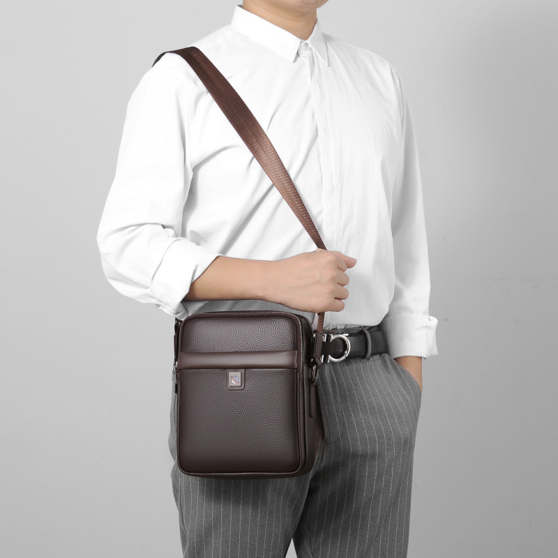 Chiếc túi này được làm từ chất liệu da mềm mại, mang đến cảm giác dễ chịu khi đeo. Kiểu dáng túi đeo chéo hiện đại, có hai khóa kéo và nhiều ngăn nhỏ tiện lợi để sắp xếp đồ dùng cá nhân gọn gàng. Bạn có thể điều chỉnh dây đeo linh hoạt để đeo thành túi khoác v hoặc túi đeo chéo tùy thích. Sản phẩm phù hợp cho những chuyến đi chơi hằng ngày, giúp bạn mang theo các vật dụng cần thiết một cách thoải mái và thuận tiện. | Tên sản phẩm: Túi Đeo Vai Nam Chất Liệu Da Bò - Túi Xách Ví Nam | Mã sản phẩm: A4714 - Giá: 610.000đ | Mã nhà sản xuất: BADG-G02Hình ảnh sản phẩm
