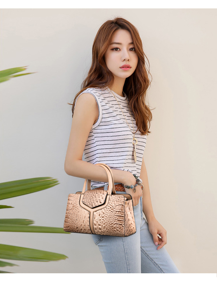 Chiếc túi xách tay dành cho nữ này kết hợp phong cách cổ điển với nét hiện đại. Túi có bề mặt vân da cá sấu tinh tế, tạo điểm nhấn ấn tượng. Kiểu dáng túi tote rộng rãi giúp bạn dễ dàng sắp xếp các vật dụng cá nhân hằng ngày. Bạn có thể đeo túi trên v một cách thoải mái hoặc xách tay một cách thanh lịch. Thiết kế này phù hợp cho nhiều dịp sử dụng, từ đi làm đến những buổi gặp gỡ thông thường. | Tên sản phẩm: Túi Xách Nữ Vân Da Cá Sấu Phong Cách Âu Mỹ - Túi Ví Nữ | Mã sản phẩm: A4716 - Giá: 640.000đ | Mã nhà sản xuất: BADG-G02Hình ảnh sản phẩm