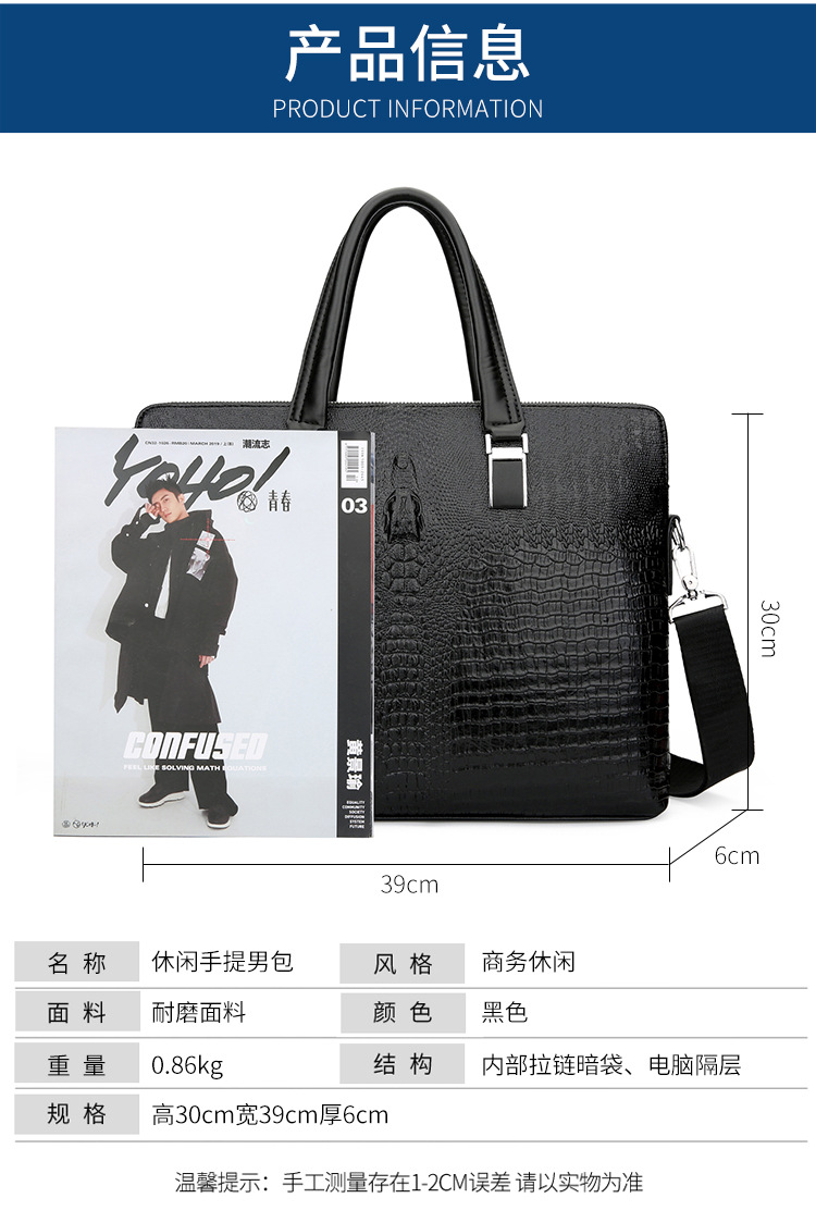 Chiếc túi xách nam này được làm từ chất liệu da thật, kiểu dáng công sở lịch sự. Điểm nhấn đặc biệt là phần khóa kéo hình đầu cá sấu, tạo nét mạnh mẽ và thời trang. Túi có hai ngăn kéo lớn dễ dàng phân loại đồ dùng. Bạn có thể đeo v hoặc mang xách tùy thích. Rất phù hợp để đựp máy tính và các vật dụng cá nhân khi đi làm hay dạo phố. | Tên sản phẩm: Túi Xách Nam Chất Liệu Da Bò - Túi Xách Ví Nam | Mã sản phẩm: A4732 - Giá: 750.000đ | Mã nhà sản xuất: BADG-G02Hình ảnh sản phẩm