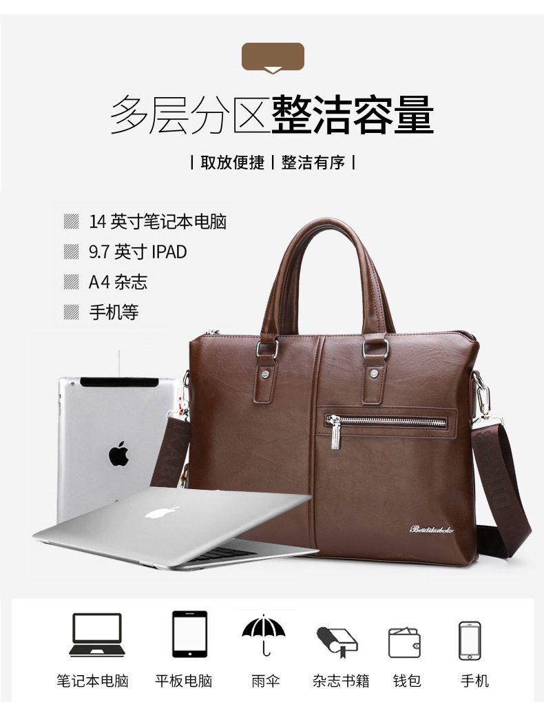 Chiếc túi dành cho nam giới này có kiểu dáng hiện đại, phù hợp cho cả công sở và sinh hoạt thường ngày. Sản phẩm được thiết kế theo kiểu ngang, có thể đeo bằng tay, vắt v hoặc mang chéo một cách linh hoạt. Ngăn bên trong rộng rãi, đựng vừa máy tính xách tay và các vật dụng cá nhân khác như tài liệu, điện thoại. Chất liệu bền chắc, mang lại cảm giác thoải mái khi sử dụng trong thời gian dài. | Tên sản phẩm: Túi Xách Nam - Túi Xách Ví Nam | Mã sản phẩm: A4751 - Giá: 610.000đ | Mã nhà sản xuất: BADG-G02Hình ảnh sản phẩm