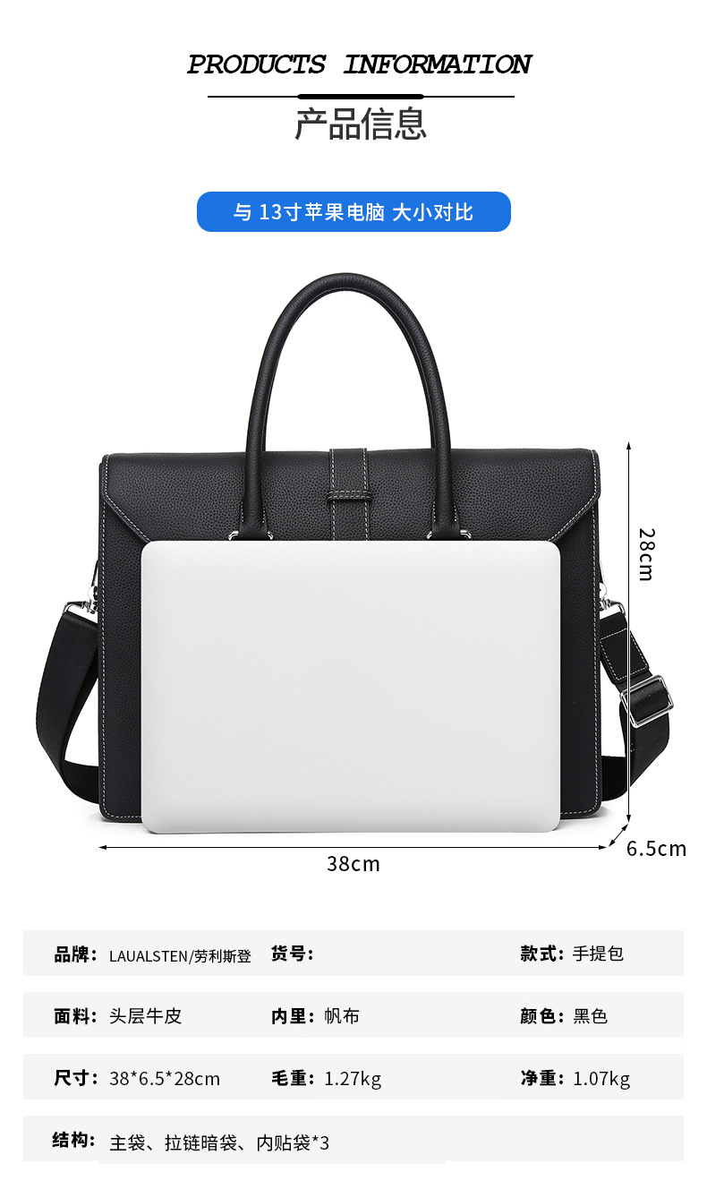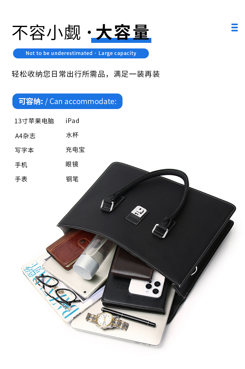Chiếc cặp công sở nam này được làm từ chất liệu da thật, mang đến vẻ ngoại hình lịch sự và bền bỉ. Thiết kế dạng xách tay cùng ngăn chứa rộng rãi bên trong, giúp bạn dễ dàng sắp xếp máy tính, tài liệu và các vật dụng cá nhân khác. Sản phẩm phù hợp cho cả công việc và những dịp sinh hoạt thường ngày. Khi sử dụng, bạn chỉ cần xách theo qu da là được. | Tên sản phẩm: Túi Xách Nam Chất Liệu Da Bò - Túi Xách Ví Nam | Mã sản phẩm: A4827 - Giá: 2.580.000đ | Mã nhà sản xuất: GUDTH-G06Hình ảnh sản phẩm