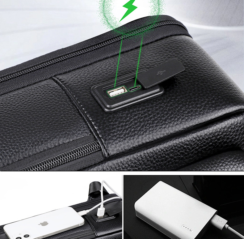 Ba lô dành cho nam, được làm từ chất liệu da thật, mang đến vẻ ngoại hình lịch sự và bền bỉ. Thiết kế đa chức năng với ngăn chứa rộng rãi, phù hợp cho công việc văn phòng hay những chuyến đi chơi. Balo có tính năng hiện đại với cổng kết nối USB tiện lợi bên ngoài, giúp bạn dễ dàng sạc điện thoại khi đang di chuyển. Khi sử dụng, chỉ cần kết nối với nguồn sạc dự phòng đặt trong ngăn riêng. | Tên sản phẩm: Túi Đeo Vai Nam Chất Liệu Da Bò - Túi Xách Ví Nam | Mã sản phẩm: A4866 - Giá: 1.780.000đ | Mã nhà sản xuất: GUDTH-G05Hình ảnh sản phẩm