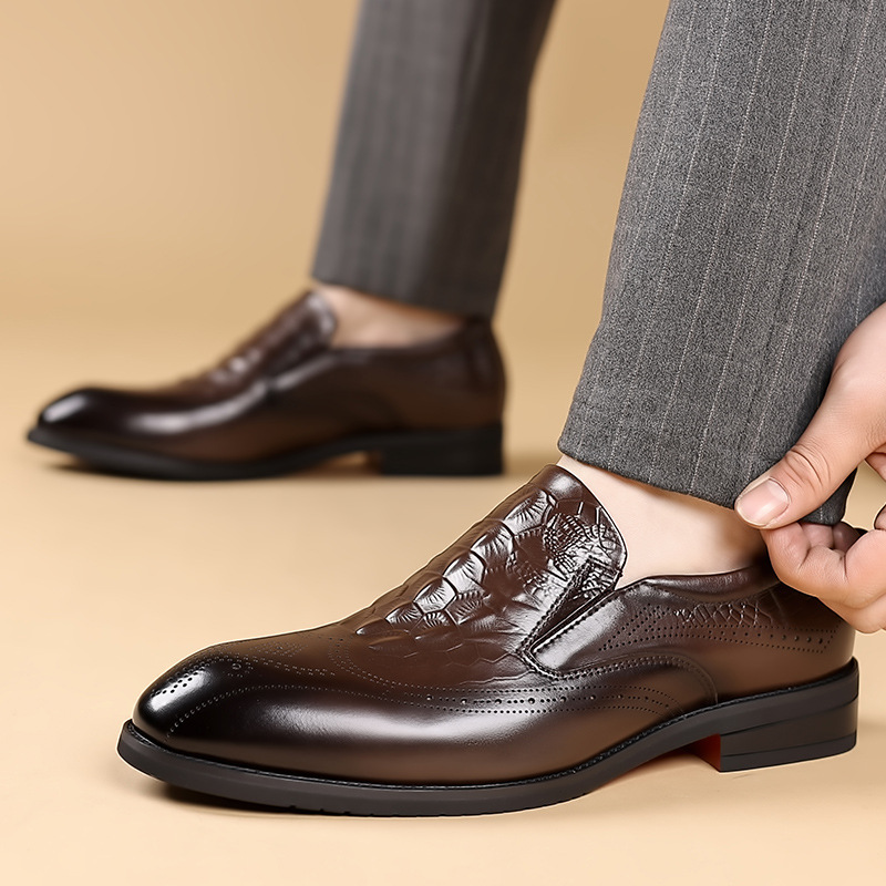 Giày sử dụng lớp da thật mềm mại bên ngoài và bên trong, mang lại cảm giác dễ chịu khi mang. Đế giày được làm cùng chất liệu da mềm, tạo sự nhẹ nhàng và linh hoạt cho bước chân. Kiểu dáng phù hợp cho cả công sở và những dịp thư giãn thường ngày. Chỉ cần vệ sinh bằng khăn mềm và bảo quản nơi khô ráo để giữ giày bền lâu. | Tên sản phẩm: Giày Da Nam Chất Liệu Da Bò Đế Mềm - Giày Dép Nam | Mã sản phẩm: A4921 - Giá: 1.060.000đ | Mã nhà sản xuất: WED-C-G03Hình ảnh sản phẩm
