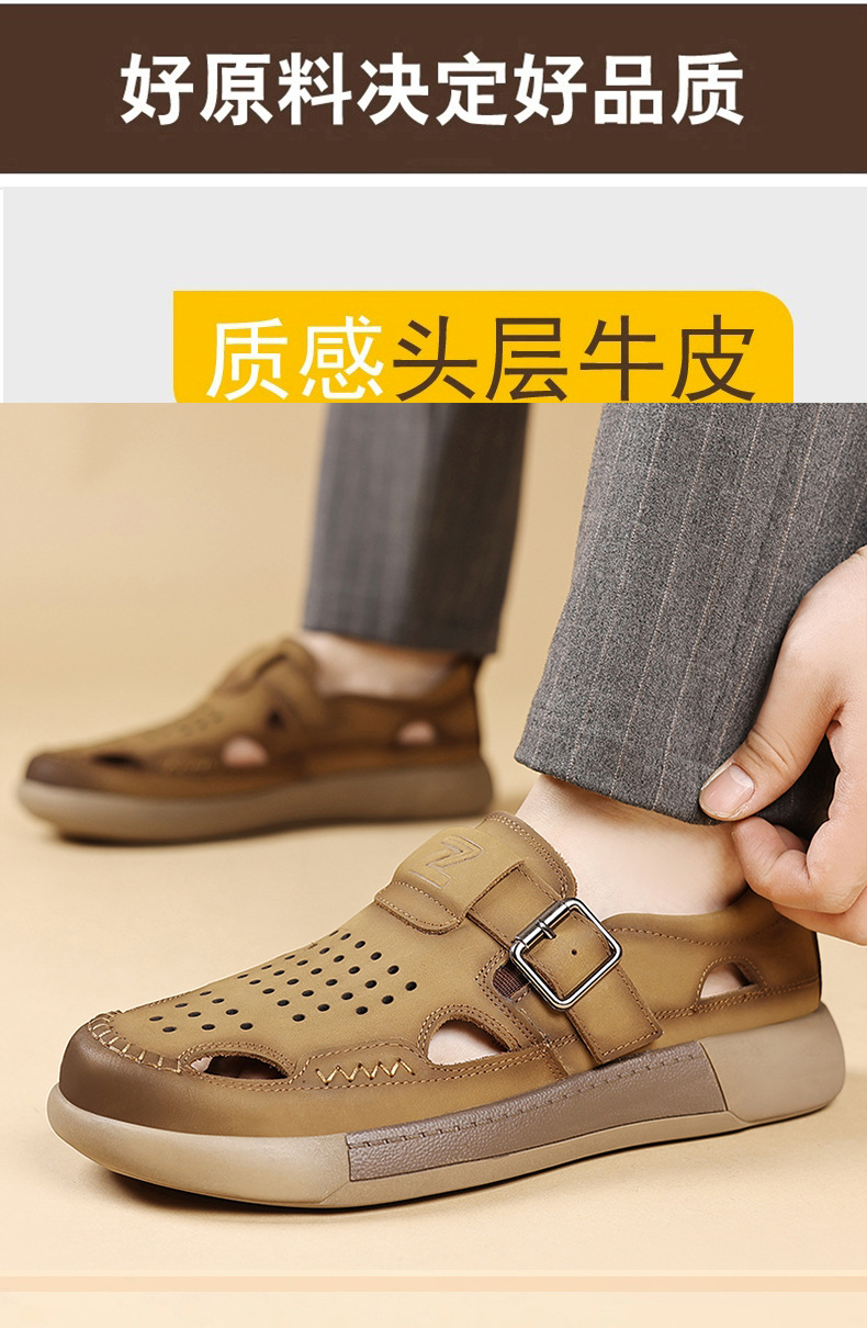 Giày bệt da thật có phần mũi đục lỗ trang trí kiểu dáng thời trang. Sản phẩm được làm hoàn toàn từ chất liệu da bò tự nhiên, bao gồm cả mặt ngoài, lớp lót bên trong và đế lót chân, mang lại cảm giác mềm mại và thoải mái tối đa. Đế giày và mặt giày đều rất dẻo d, tạo sự êm ái khi di chuyển cả ngày. Dễ dàng phối hợp với nhiều trang phục khác nhau. | Tên sản phẩm: Giày Dép Sandal Nam Chất Liệu Da Bò Đế Mềm - Giày Dép Nam | Mã sản phẩm: A4939 - Giá: 1.380.000đ | Mã nhà sản xuất: WED-C-G04Hình ảnh sản phẩm