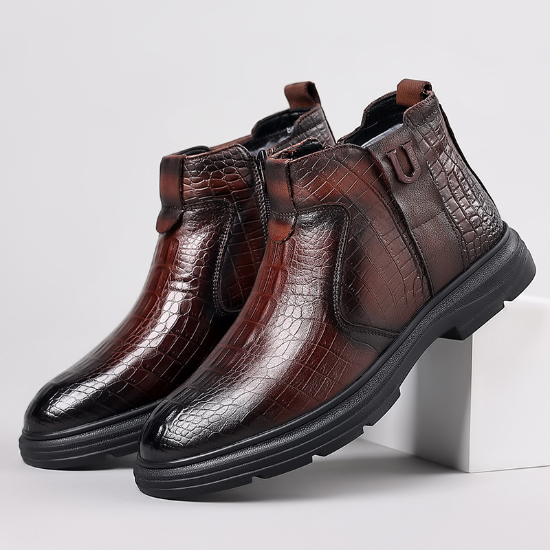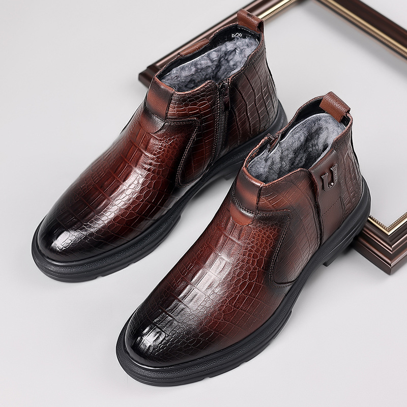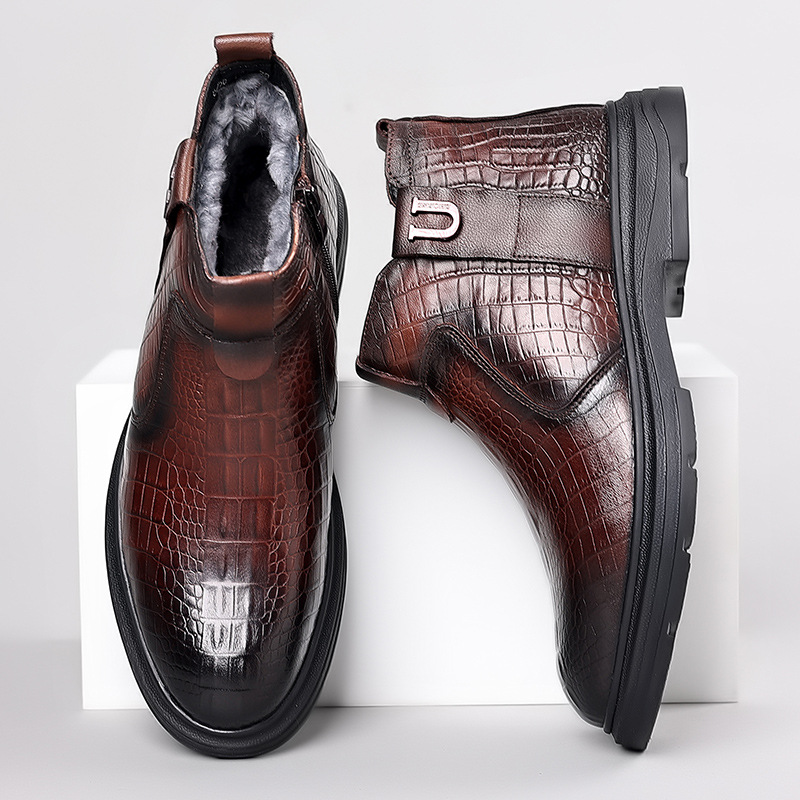 Giày tây dáng cổ thấp, kiểu dáng phù hợp cho cả công sở và dạo phố. Bên trong được lót một lớp lông cừu dày và ấm, giúp giữ nhiệt tốt trong những ngày trời lạnh. Đế giày được làm từ chất liệu có độ bám tốt, mang lại cảm giác vững chãi khi di chuyển. Bạn có thể dùng giày để đi làm hoặc kết hợp với các trang phục thường ngày. | Tên sản phẩm: Giày Da Nam Chất Liệu Vải Bông Dày Ấm Hàng Mùa Xuân Thu Đông - Giày Dép Nam | Mã sản phẩm: A4957 - Giá: 1.020.000đ | Mã nhà sản xuất: WED-C-G03Hình ảnh sản phẩm