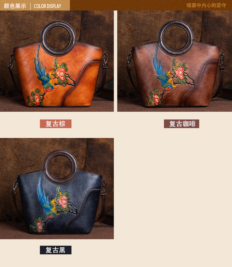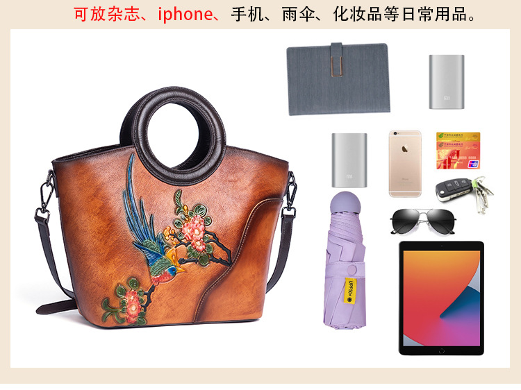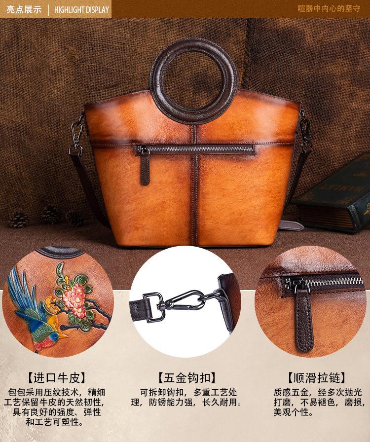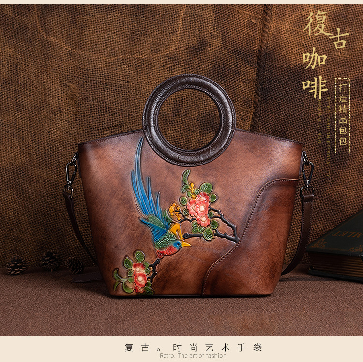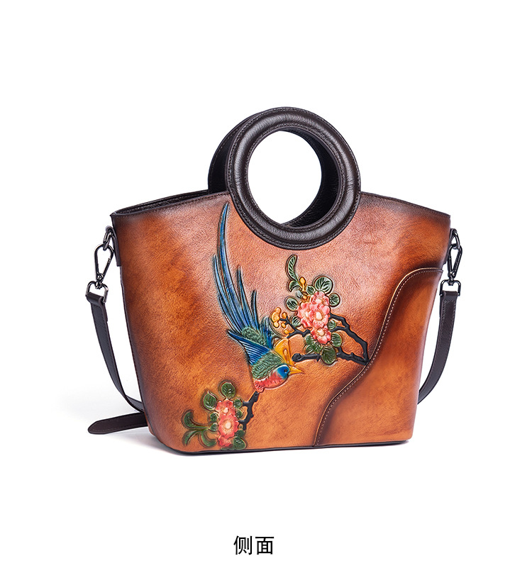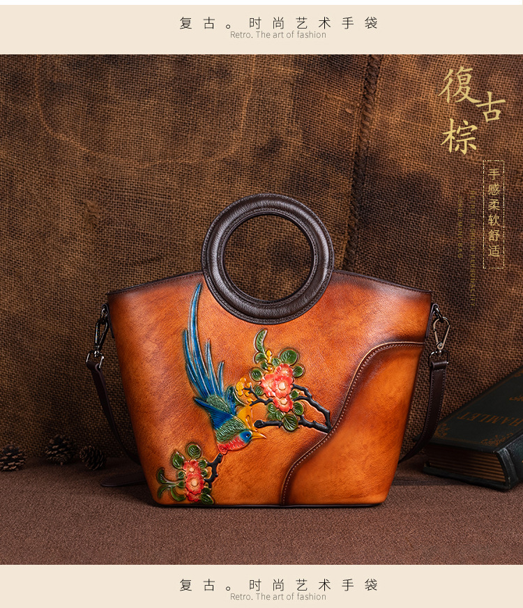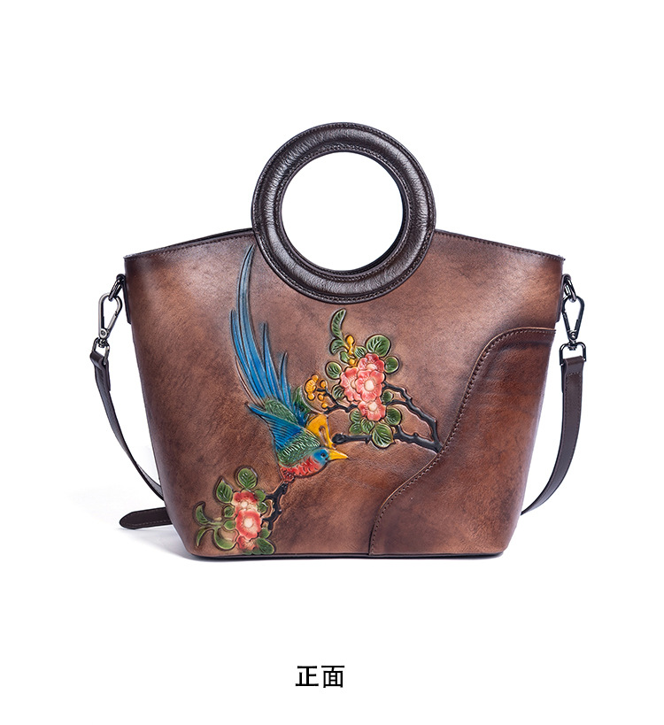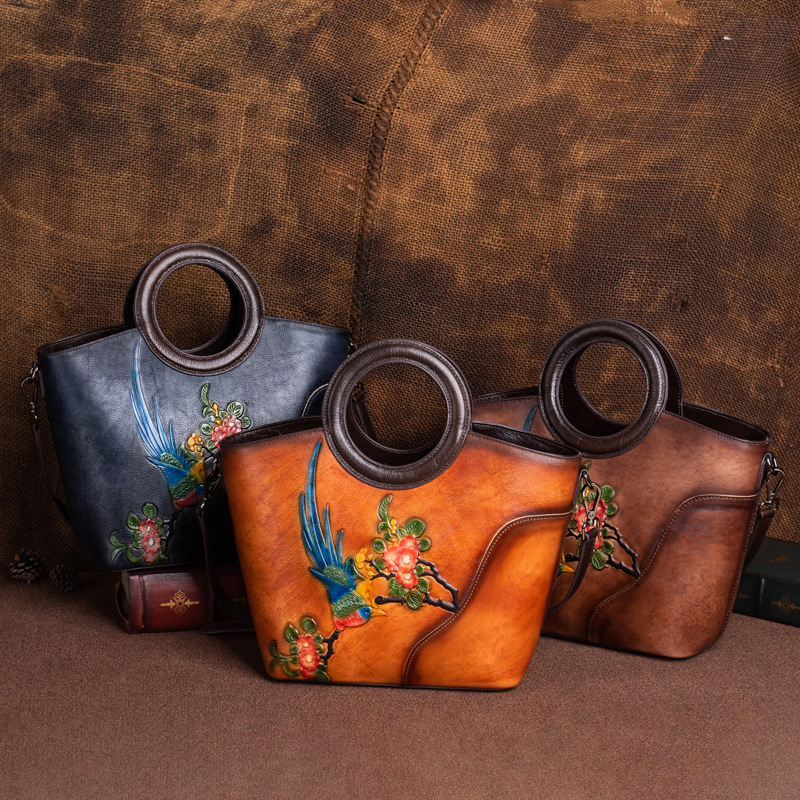 Túi xách nữ được làm từ chất liệu da thật tự nhiên, kiểu dáng thùng nước mang phong cách cổ điển. Bề mặt túi có họa tiết ép nổi kết hợp đường nét vẽ tay tinh tế. Thiết kế đa năng có thể đeo v, khoác chéo hoặc xách tay theo ý thích. Ngăn chứa rộng rãi giúp đựng vừa nhiều vật dụng cá nhân cần thiết. Sản phẩm phù hợp để sử dụng hàng ngày hoặc khi đi làm, đi chơi. | Tên sản phẩm: Túi Xách Nữ Chất Liệu Da Bò Họa Tiết Hoa Phục Cổ Cổ Điển - Túi Ví Nữ | Mã sản phẩm: A4977 - Giá: 1.730.000đ | Mã nhà sản xuất: GUDI-G05Hình ảnh sản phẩm