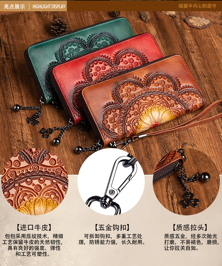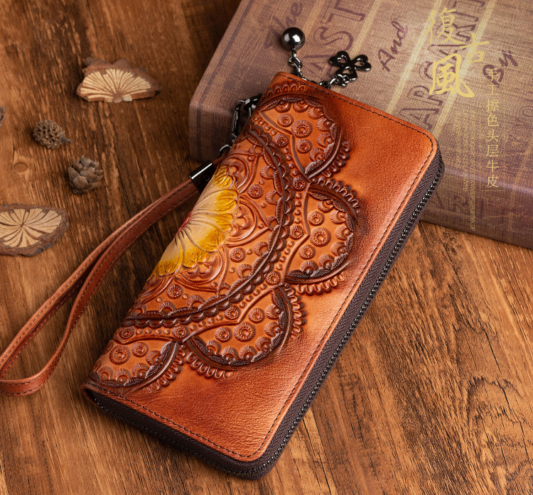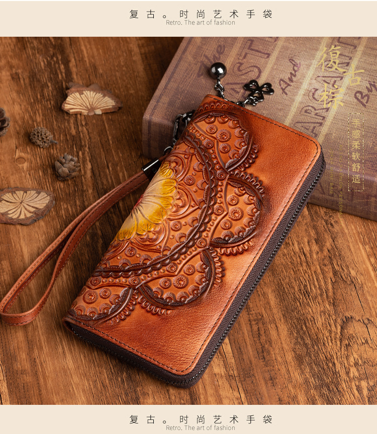 Chiếc bóp dành cho nữ được làm từ chất da bò tự nhiên, mang phong cách cổ điển với dáng dài thanh lịch. Điểm nổi bật là quá trình nhuộm màu hoàn toàn thủ công, tạo nên những đường nét và màu sắc độc đáo. Sản phẩm có nhiều ngăn rộng rãi, giúp đựng tiền mặt, thẻ và các vật dụng cá nhân gọn gàng. Bạn có thể dùng như bóp cầm tay hoặc để trong túi xách lớn. Kiểu dáng phù hợp cho nhiều dịp sử dụng hàng ngày. | Tên sản phẩm: Ví Bóp Cầm Tay Nữ Chất Liệu Da Bò Phục Cổ Cổ Điển - Túi Ví Nữ | Mã sản phẩm: A5005 - Giá: 720.000đ | Mã nhà sản xuất: GUDI-G02Hình ảnh sản phẩm