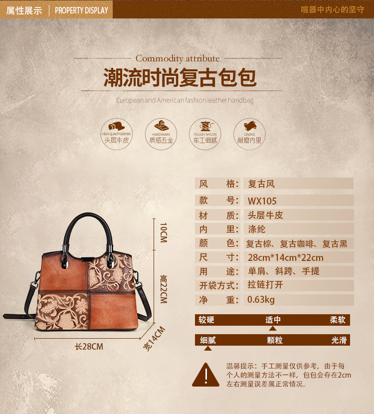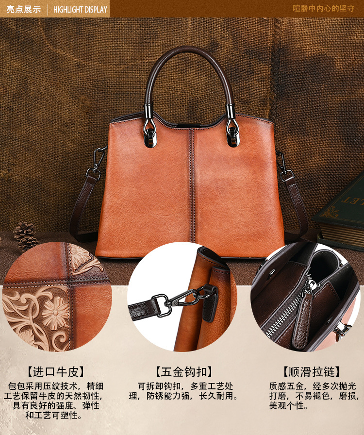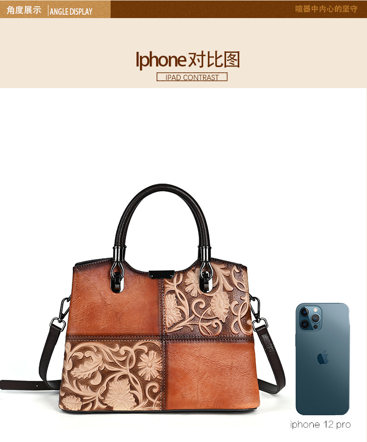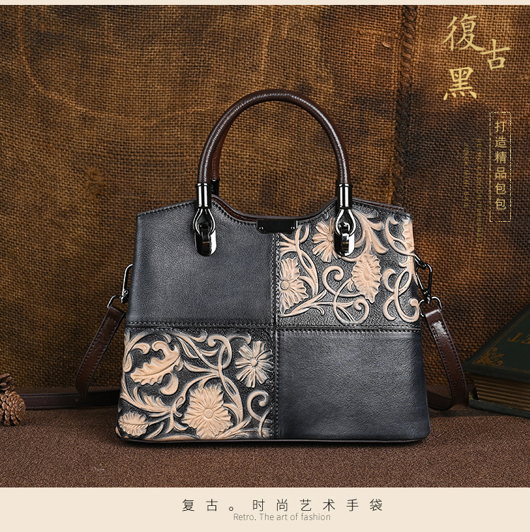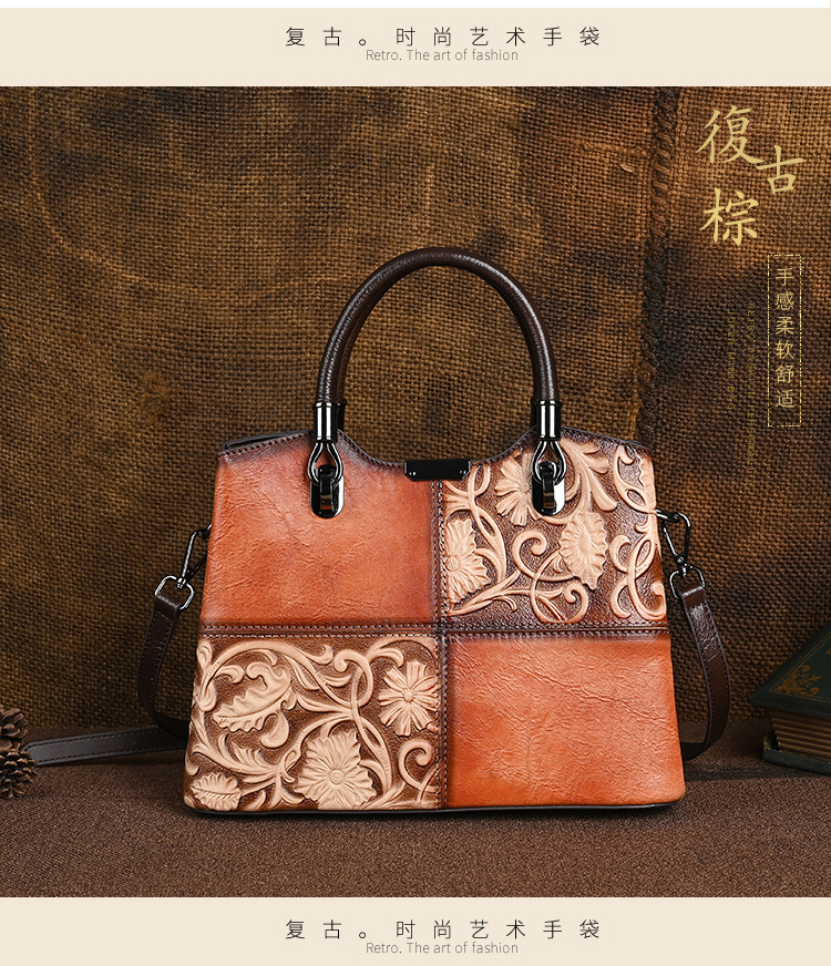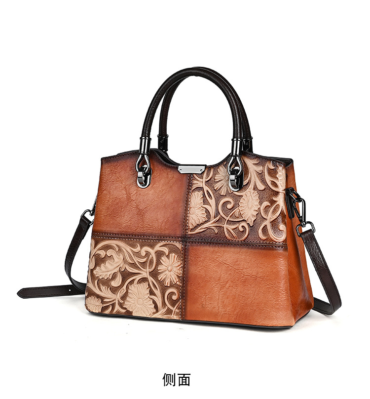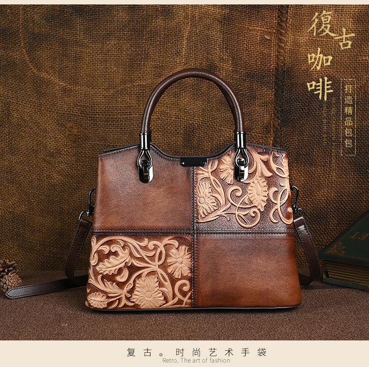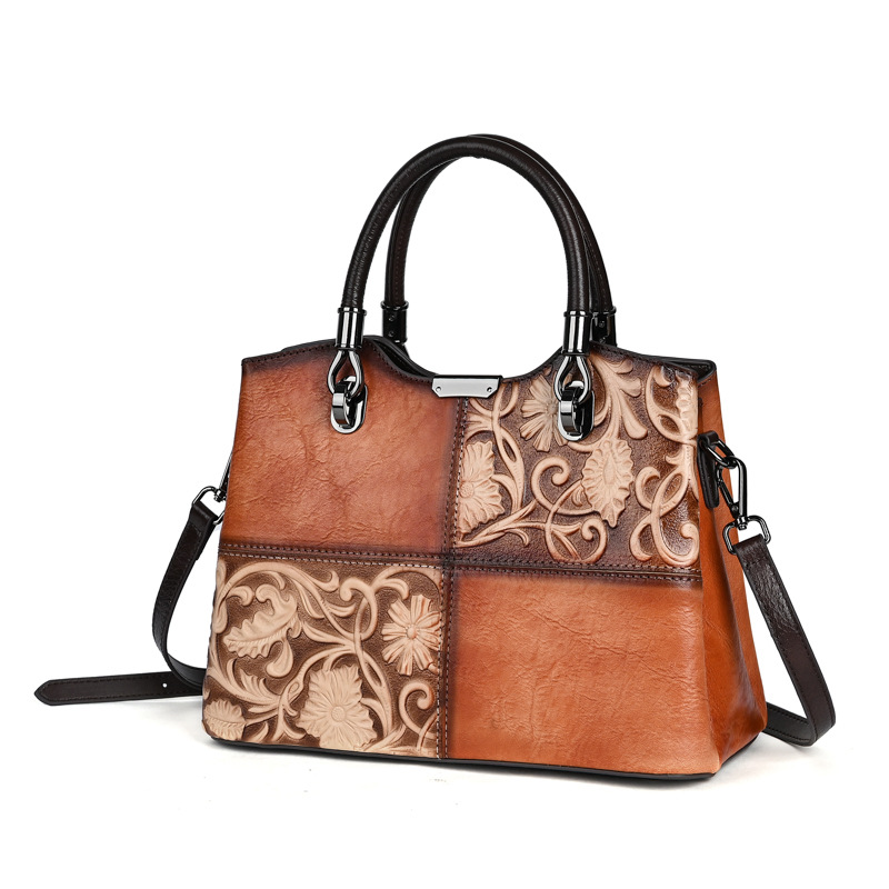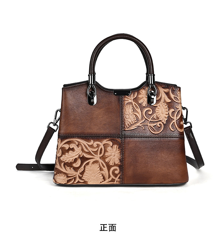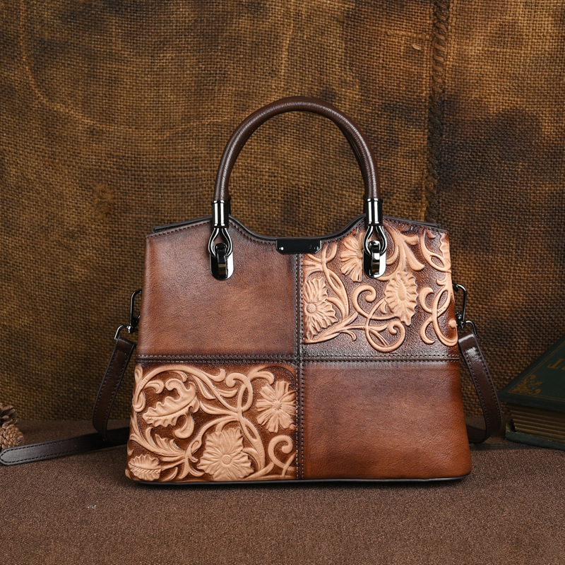 Chiếc túi xách này được làm từ chất liệu da bò mềm mại, bề mặt có hoa văn dập nổi mang phong cách cổ điển. Màu da được tạo ra hoàn toàn thủ công, tôn lên vẻ đẹp độc đáo và tinh tế. Kiểu dáng túi bucket kết hợp qu đeo tay và dây đeo dài, giúp bạn có thể xách tay hoặc đeo chéo người một cách thoải mái. Sản phẩm phù hợp để sử dụng hàng ngày, đựng được các vật dụng cá nhân cần thiết. | Tên sản phẩm: Túi Xách Nữ Chất Liệu Da Bò Họa Tiết Hoa Phục Cổ Cổ Điển - Túi Ví Nữ | Mã sản phẩm: A5017 - Giá: 1.680.000đ | Mã nhà sản xuất: GUDI-G05Hình ảnh sản phẩm