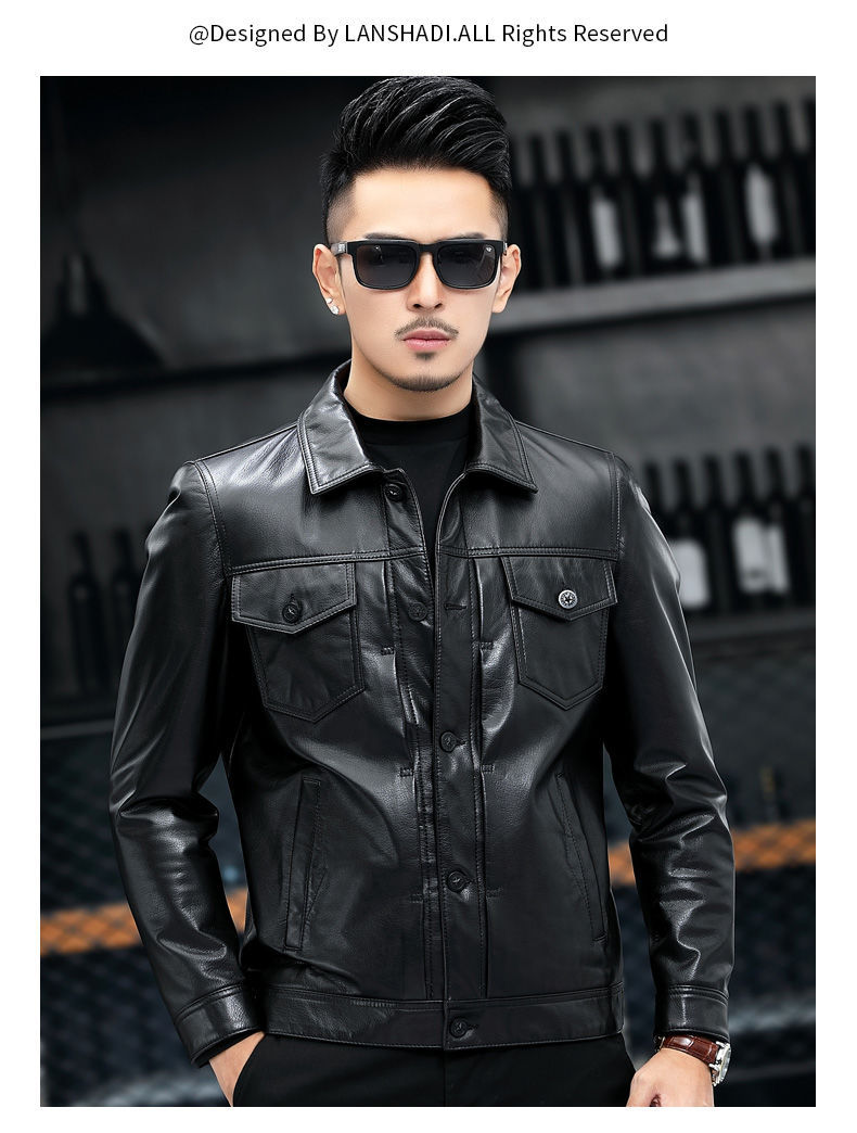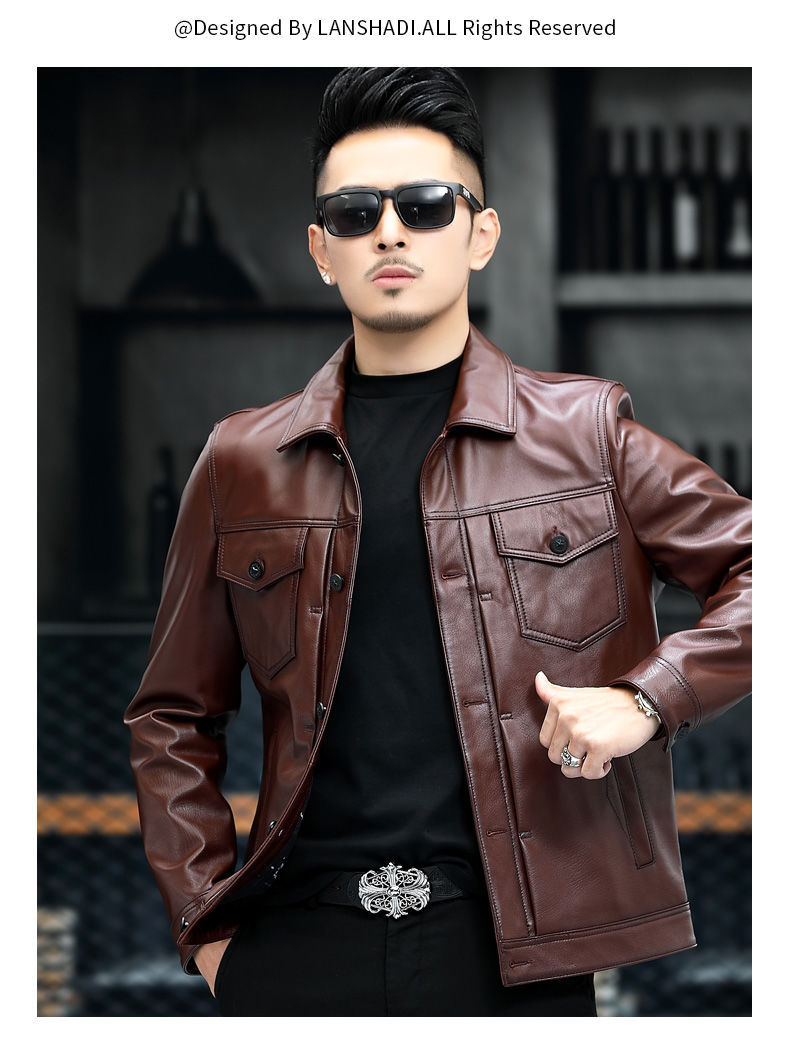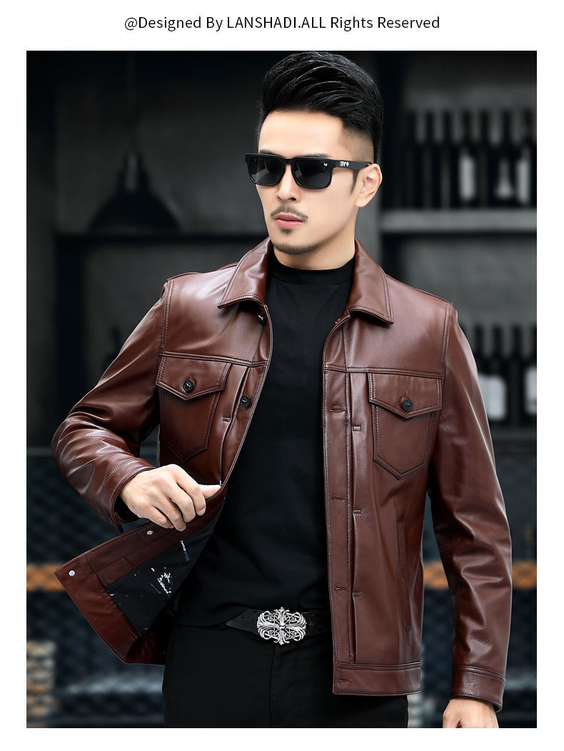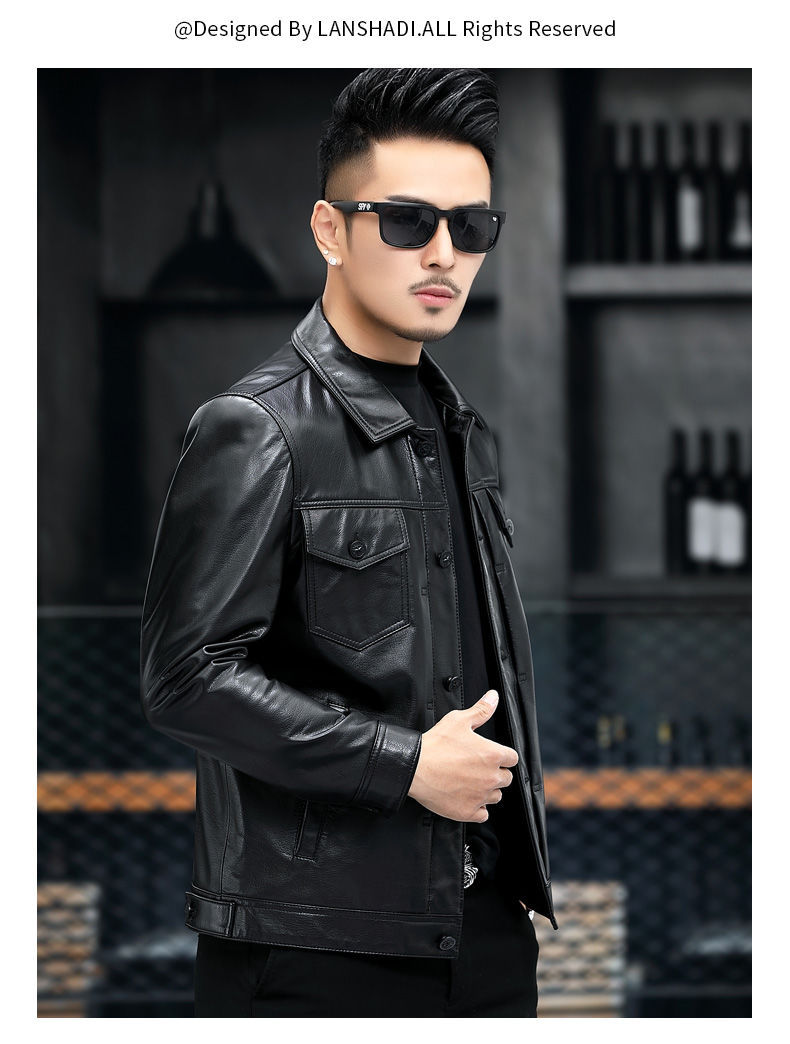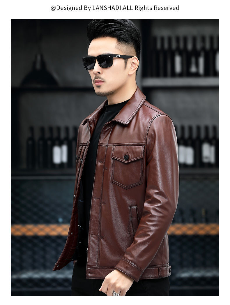 Áo khoác da thật dành cho nam, được làm từ lớp da bò tự nhiên bền đẹp. Kiểu dáng phong cách mạnh mẽ với cổ bẻ, phù hợp khi đi xe máy hoặc mặc hằng ngày. Sản phẩm có đường may tỉ mỉ, form dáng trẻ trung và năng động. Bạn có thể mặc kèm với áo thun và quần jeans để tạo vẻ ngoài cá tính. Giữ gìn sản phẩm bằng cách lau nhẹ với vải mềm khi bám bụi. | Tên sản phẩm: Áo Da Nam Chất Liệu Da Bò Kín Cổ - Thời Trang Nam | Mã sản phẩm: a5030 - Giá: 4.160.000đ | Mã nhà sản xuất: HADG-G06Hình ảnh sản phẩm
