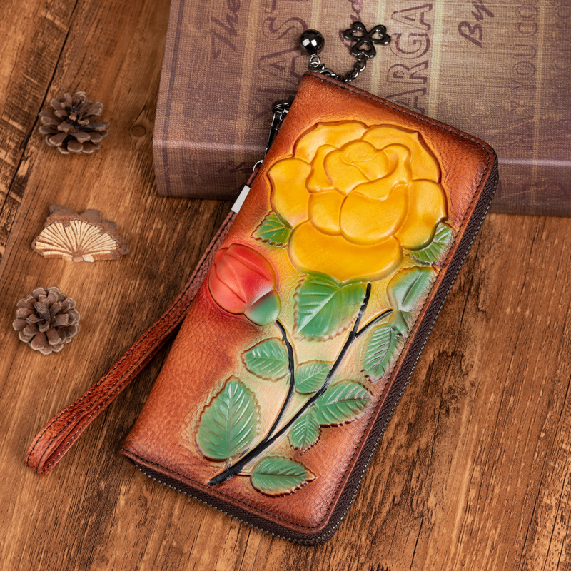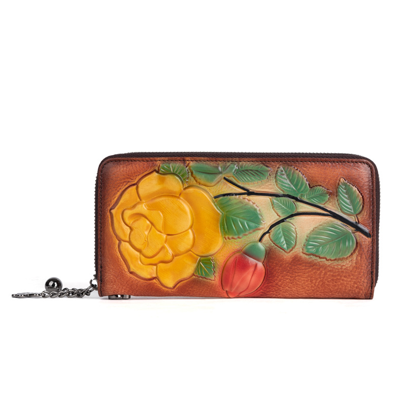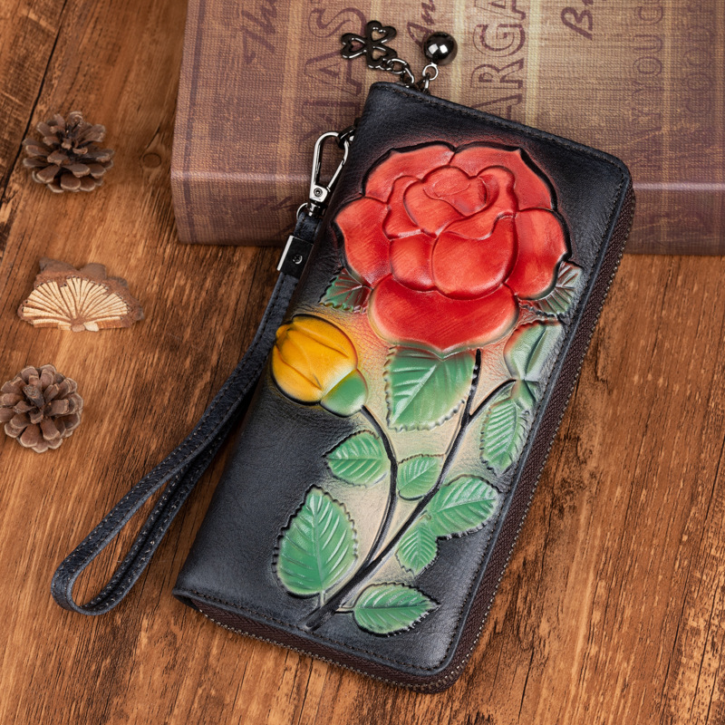 Chiếc ví nữ mới này có họa tiết hoa hồng được dập nổi tinh tế. Kiểu dáng dài vừa phải, kết hợp khóa kéo tiện lợi, giúp bạn dễ dàng sắp xếp và bảo vệ các vật dụng cá nhân. Thiết kế theo phong cách châu Âu hiện đại, phù hợp để cầm tay hoặc cho vào túi xách. Bạn có thể dùng để đựng tiền, thẻ và một số đồ dùng nhỏ hằng ngày. | Tên sản phẩm: Ví Bóp Cầm Tay Nữ Họa Tiết Hoa Phong Cách Âu Mỹ - Túi Ví Nữ | Mã sản phẩm: A5045 - Giá: 720.000đ | Mã nhà sản xuất: GUDI-G02Hình ảnh sản phẩm