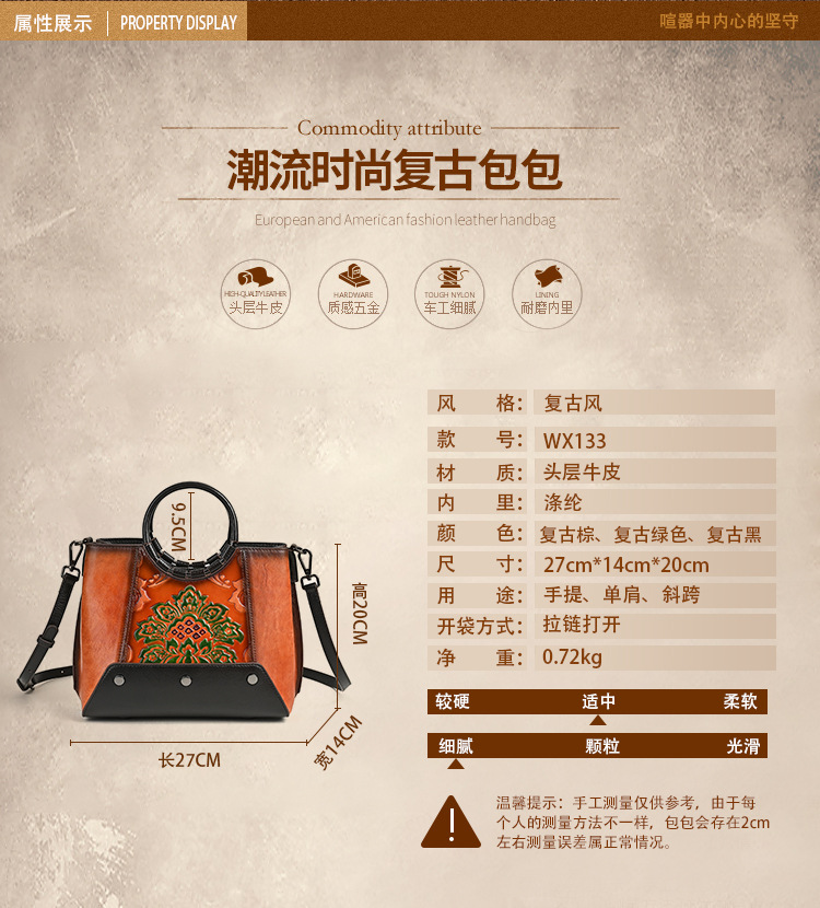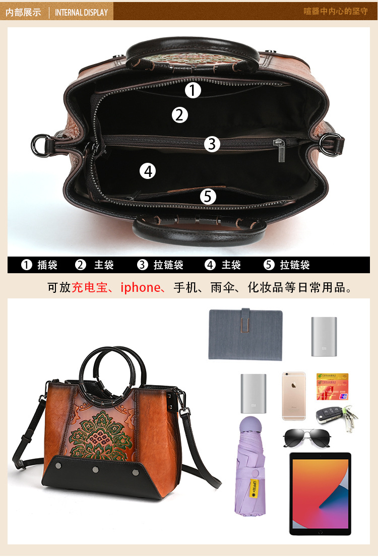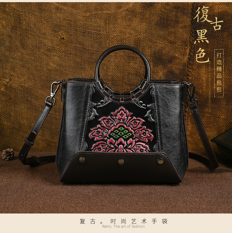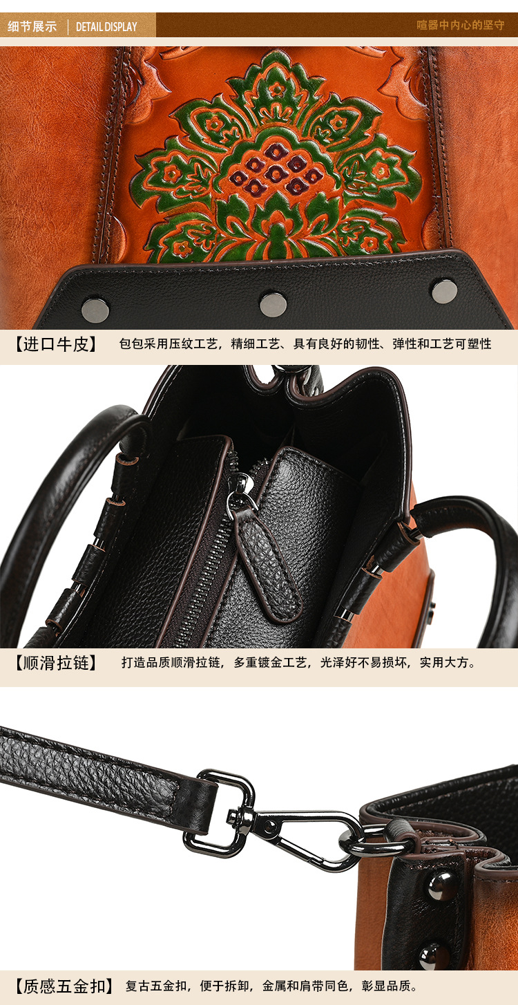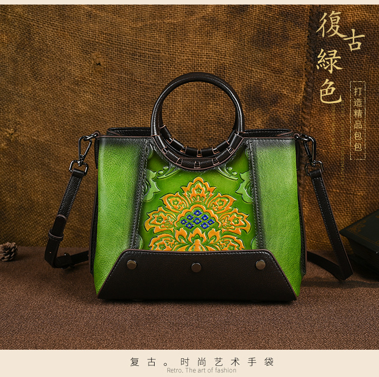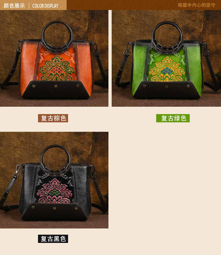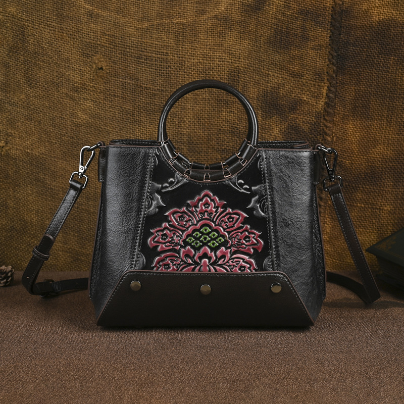 Túi xách dành cho nữ với dây đeo chéo và qu cầm tay tiện lợi. Chất liệu làm từ da thật, bề mặt được dập nổi hoa văn tinh tế kết hợp kỹ thuật tạo màu vân cổ, mang đến vẻ đẹp hoài niệm. Bên trong túi rộng rãi, đựng vừa ví, điện thoại và các vật dụng cá nhân cần thiết. Khi sử dụng, có thể đeo chéo người hoặc xách tay tùy thích. Phù hợp cho nhiều dịp sử dụng hằng ngày. | Tên sản phẩm: Túi Xách Nữ Chất Liệu Da Bò Họa Tiết Hoa Phục Cổ Cổ Điển - Túi Ví Nữ | Mã sản phẩm: A5050 - Giá: 1.640.000đ | Mã nhà sản xuất: GUDI-G05Hình ảnh sản phẩm