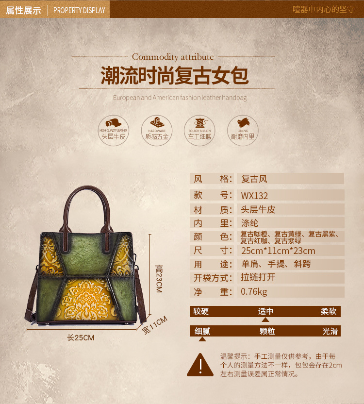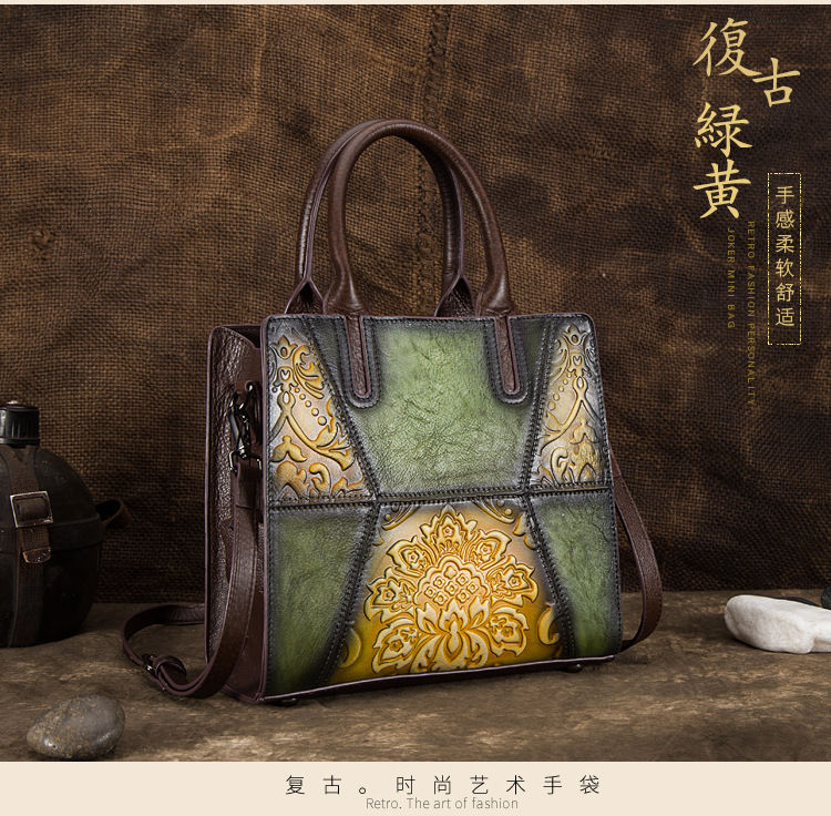 Túi xách nữ thiết kế theo phong cách xưa, với kỹ thuật tạo hoa văn nổi và xử lý màu bằng tay tinh tế. Sản phẩm kết hợp hài hòa giữa dây đeo chéo và qu xách, mang đến sự tiện lợi tùy theo nhu cầu sử dụng. Kiểu dáng kết hợp nhiều chi tiết tạo nên vẻ đẹp thời trang, phù hợp cho nhiều dịp khác nhau. Có thể dùng như túi đeo chéo hoặc xách tay một cách linh hoạt. Chất liệu bền đẹp, dễ dàng phối hợp với các trang phục thường ngày. | Tên sản phẩm: Túi Xách Nữ Họa Tiết Hoa Phục Cổ Cổ Điển - Túi Ví Nữ | Mã sản phẩm: A5061 - Giá: 1.680.000đ | Mã nhà sản xuất: GUDI-G05Hình ảnh sản phẩm