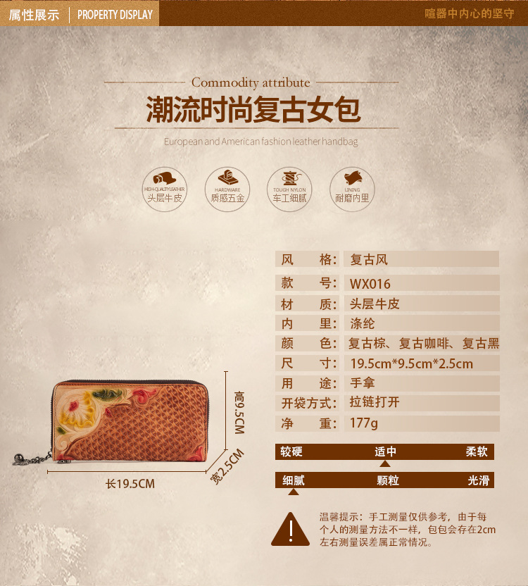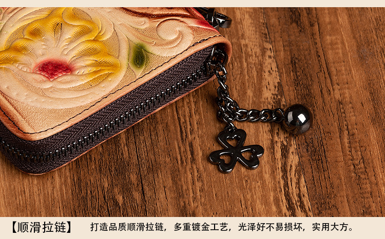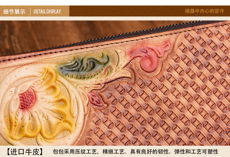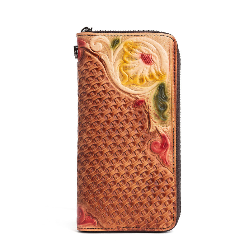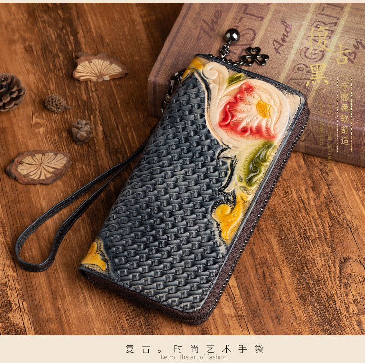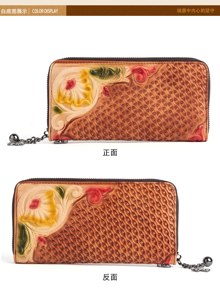 Ví tiền dành cho nữ, kiểu dáng dài vừa tay cầm, mang phong cách hoài cổ đẹp mắt. Sản phẩm được làm từ chất liệu da thật, bền đẹp theo thời gian. Điểm nhấn đặc biệt là phần tô màu được làm thủ công tinh xảo, tạo nên những họa tiết độc đáo trên bề mặt. Bên trong có nhiều ngăn rộng rãi, giúp bạn dễ dàng sắp xếp tiền mặt, thẻ và các vật dụng cá nhân. Rất tiện lợi để mang theo khi đi làm hoặc dự tiệc. | Tên sản phẩm: Ví Bóp Nữ Chất Liệu Da Bò Phục Cổ Cổ Điển - Túi Ví Nữ | Mã sản phẩm: A5076 - Giá: 720.000đ | Mã nhà sản xuất: GUDI-G02Hình ảnh sản phẩm