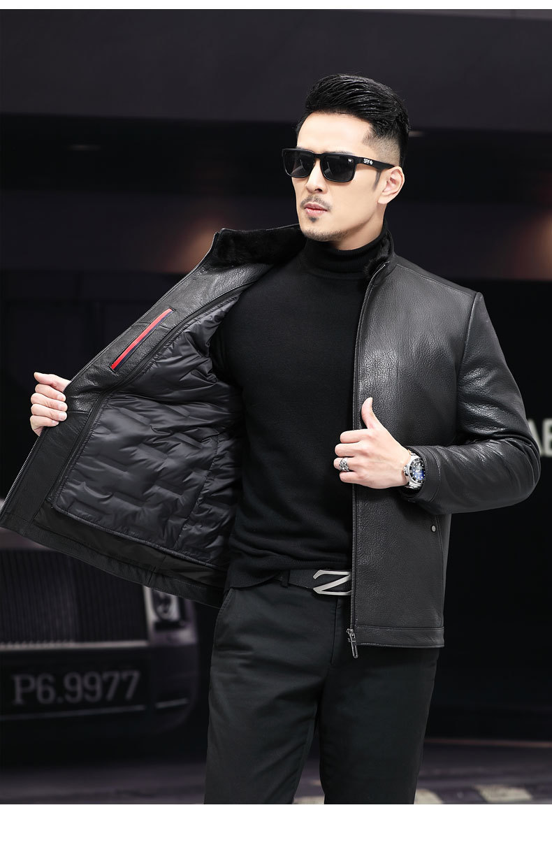Áo khoác da dành cho nam có đường nét mạnh mẽ. Chất liệu da thật mềm mại, bề mặt in nổi hình da hươu độc đáo. Cổ áo dựng ấm áp có thể mở ra hoặc gập lại linh hoạt. Điểm nổi bật là lớp áo lót lông vũ bên trong có thể tháo rời dễ dàng. Sản phẩm giữ ấm tốt, phù hợp mặc khi trời lạnh hoặc chuyển mùa. Cách sử dụng đơn giản, mặc ngoài cùng như các loại áo khoác thông thường. | Tên sản phẩm: Áo Da Nam Chất Liệu Da Bò Kín Cổ - Thời Trang Nam | Mã sản phẩm: a5081 - Giá: 6.290.000đ | Mã nhà sản xuất: HADG-G06Hình ảnh sản phẩm