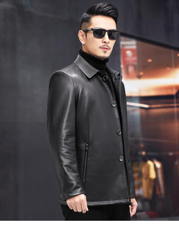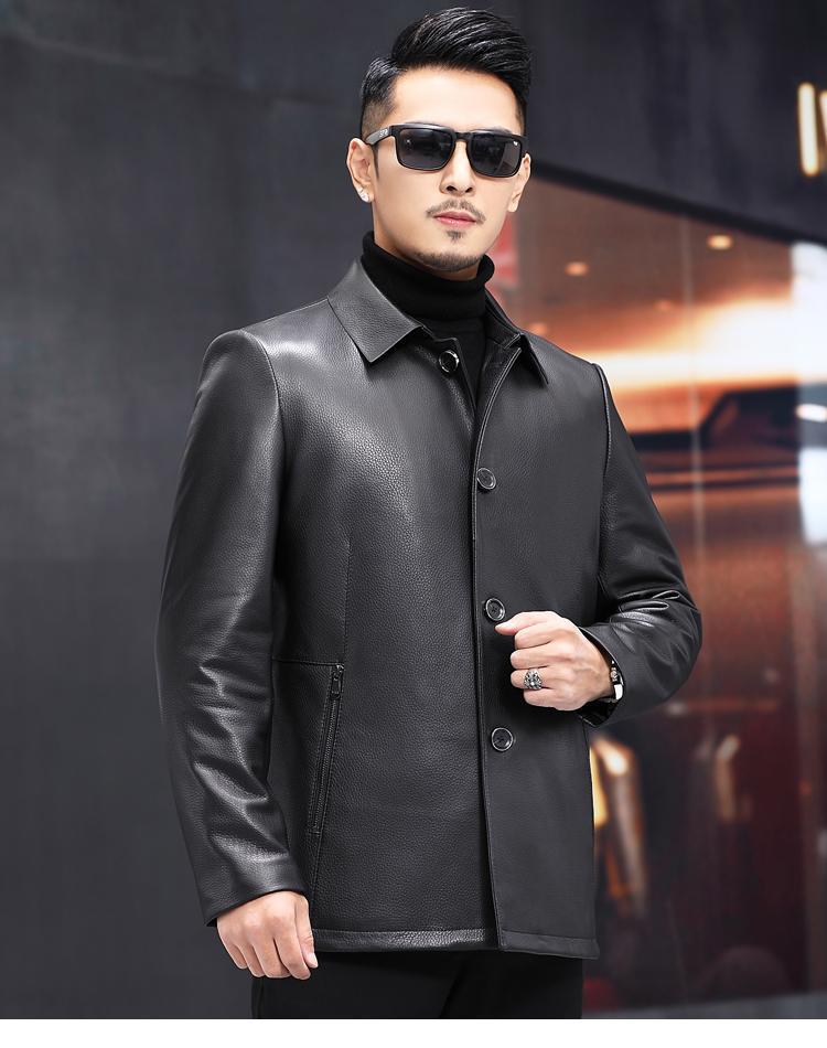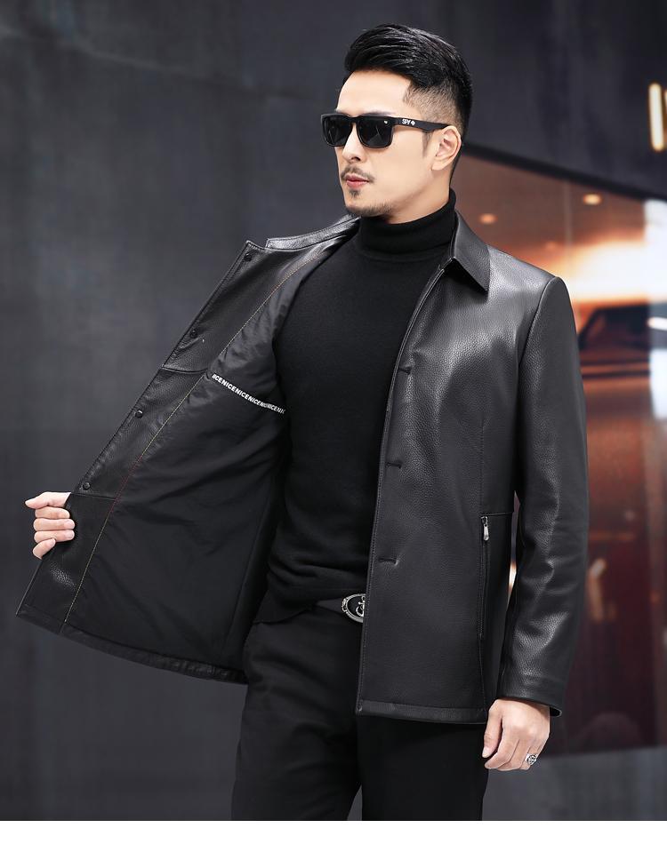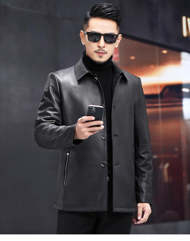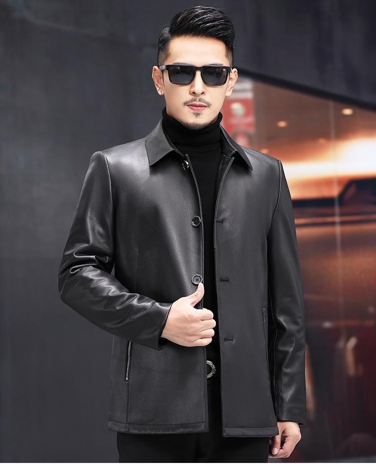 Áo khoác da thật dành cho nam, có lớp lót bông giữ ấm bên trong, rất phù hợp cho thời tiết lạnh. Chất liệu da bò mềm mại với bề mặt vân giả da n tạo nên vẻ đẹp mạnh mẽ. Kiểu dáng cổ bẻ, ôm vừa vặn cơ thể, dễ dàng phối cùng nhiều trang phục. Sản phẩm chỉ cần lau chùi nhẹ nhàng bằng khăn mềm sau khi dùng để giữ được độ bền đẹp lâu dài. | Tên sản phẩm: Áo Da Nam Chất Liệu Da Bò Kín Cổ Hàng Mùa Xuân Thu Đông - Thời Trang Nam | Mã sản phẩm: a5082 - Giá: 6.290.000đ | Mã nhà sản xuất: HADG-G06Hình ảnh sản phẩm
