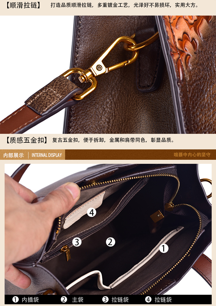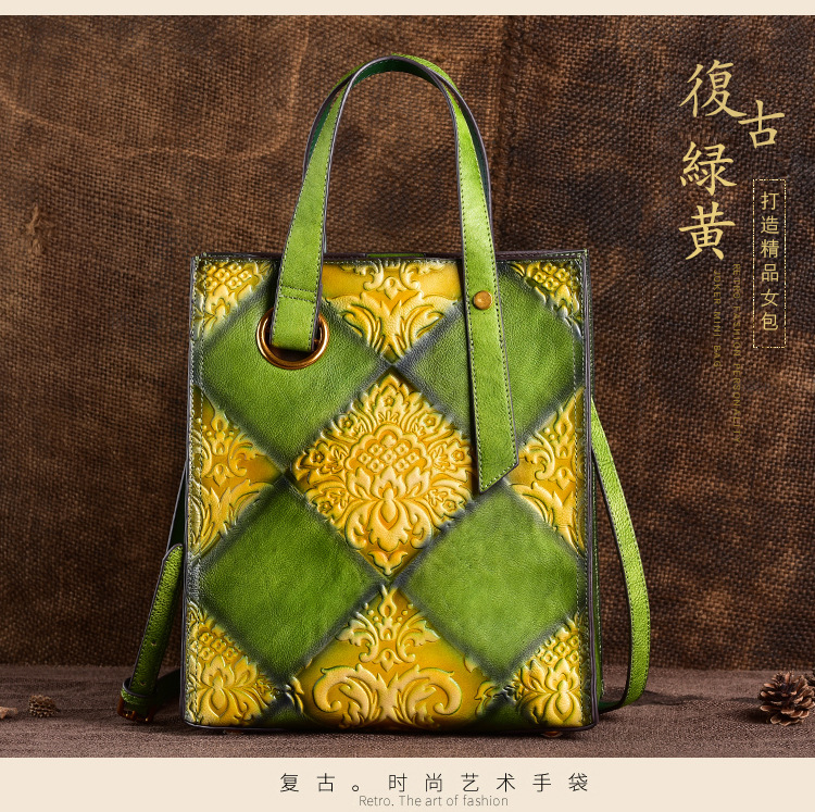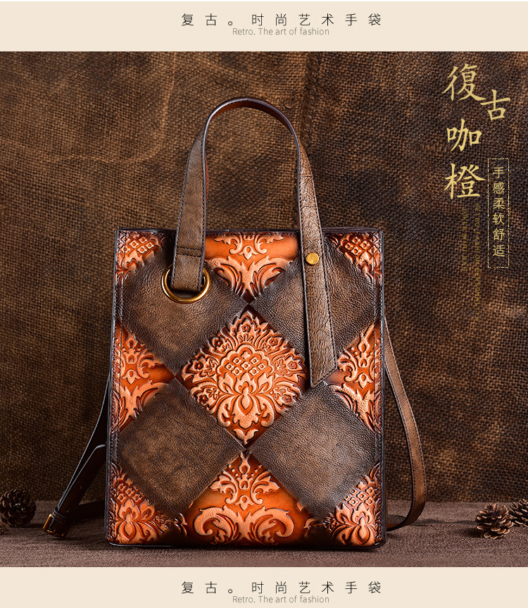 Túi xách tay và đeo chéo dành cho nữ, được làm hoàn toàn từ chất liệu da thật. Kiểu dáng cổ điển với họa tiết dập nổi tinh tế và quy trình nhuộm màu thủ công tạo nên vẻ đẹp độc đáo cho từng sản phẩm. Thiết kế dạng thùng rộng rãi giúp bạn dễ dàng sắp xếp các vật dụng cá nhân cần thiết. Có thể sử dụng như túi xách tay hoặc đeo chéo một cách linh hoạt cho nhiều dịp khác nhau. | Tên sản phẩm: Túi Xách Nữ Chất Liệu Da Bò Họa Tiết Hoa Phục Cổ Cổ Điển - Túi Ví Nữ | Mã sản phẩm: A5085 - Giá: 1.920.000đ | Mã nhà sản xuất: GUDI-G05Hình ảnh sản phẩm