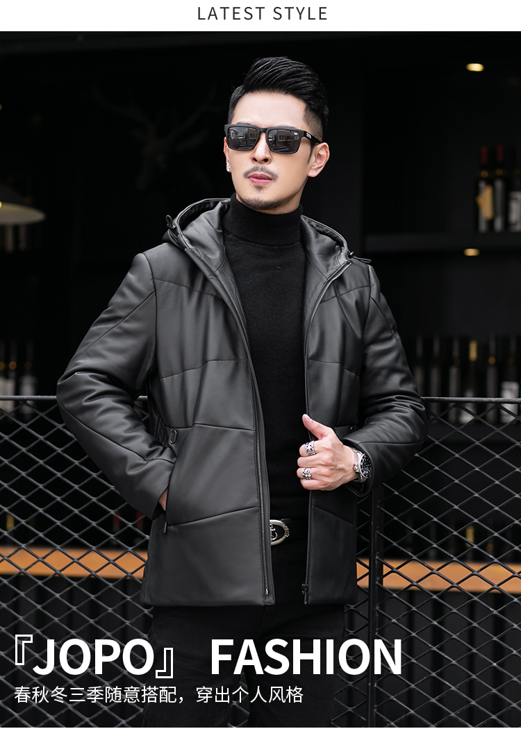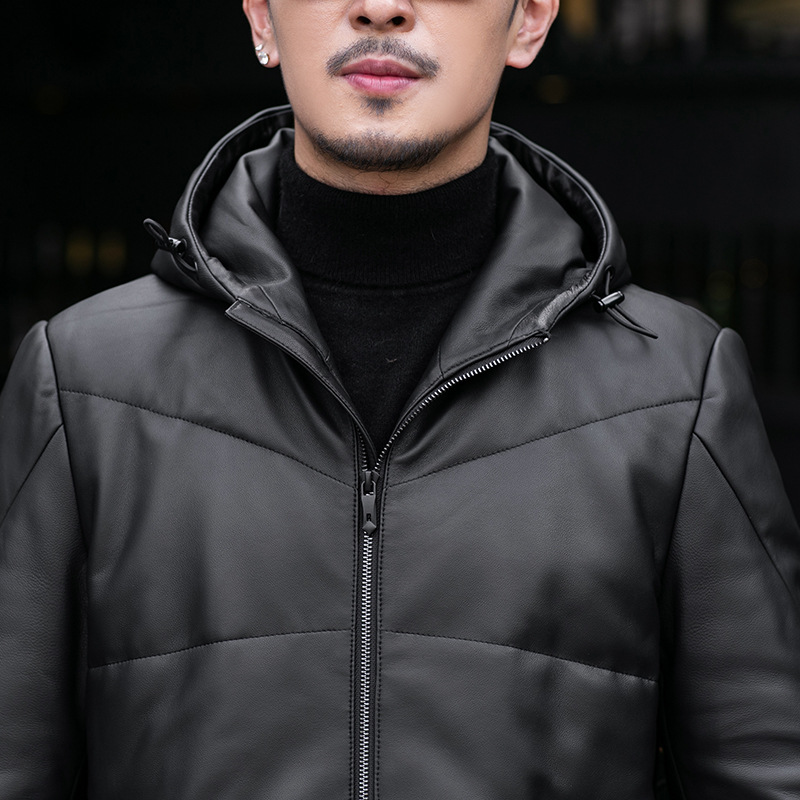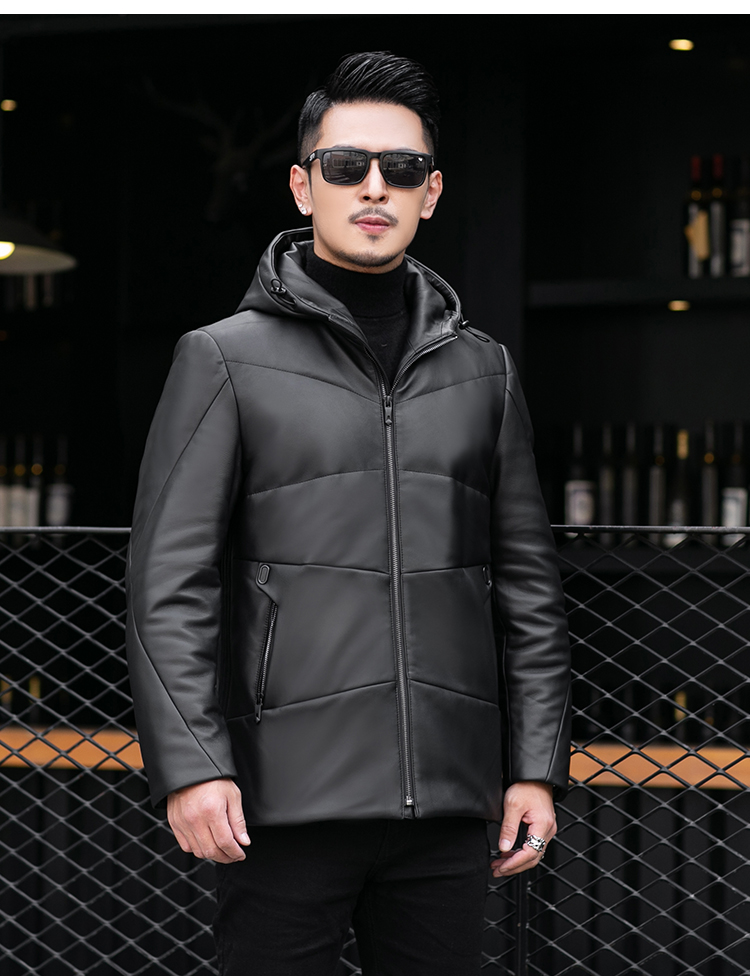 Áo khoác nam ngắn có mũ, được làm từ chất liệu da cừu mềm mại và ấm áp. Bên trong áo là lớp lông vũ nhẹ, giữ nhiệt tốt cho những ngày trời lạnh. Kiểu dáng kết hợp giữa áo da và áo lông vũ, tạo nên phong cách trẻ trung, năng động. Sản phẩm phù hợp để mặc trong nhiều dịp sinh hoạt hằng ngày. Khi dùng, tránh tiếp xúc trực tiếp với nguồn nhiệt cao và nên treo lên sau khi mặc. | Tên sản phẩm: Áo Da Nam Chất Liệu Da Bò Mũ Liền Hàng Mùa Xuân Thu Đông - Thời Trang Nam | Mã sản phẩm: a5093 - Giá: 7.220.000đ | Mã nhà sản xuất: HADG-G06Hình ảnh sản phẩm