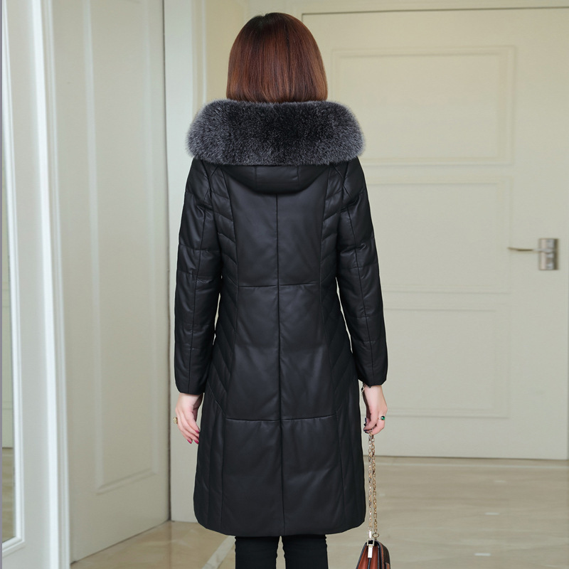 Áo khoác dáng dài ôm sát cơ thể, được kết hợp giữa chất liệu da mềm mại và lớp lông vũ giữ ấm bên trong. Phần cổ áo điểm nhấn bằng lông cáo tự nhiên, tăng thêm vẻ duyên dáng và ấm áp. Sản phẩm thích hợp mặc trong tiết trời lạnh, phối cùng quần jeans hoặc váy liền. Khi giặt, nên lau nhẹ bằng khăn ẩm để bảo quản chất liệu tốt nhất. | Tên sản phẩm: Áo Da Nữ Chất Liệu Da Bò Dáng Ôm Hàng Mùa Xuân Thu Đông - Thời Trang Nữ | Mã sản phẩm: a5125 - Giá: 8.230.000đ | Mã nhà sản xuất: HADG-G06Hình ảnh sản phẩm
