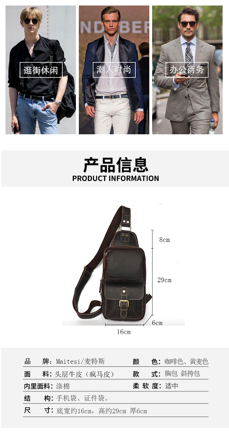 Túi đeo chéo dành cho nam, được làm từ chất liệu da bò thật tự nhiên, mang phong cách cổ điển. Thiết kế nhiều ngăn rộng rãi giúp bạn sắp xếp điện thoại, ví, chìa khóa và các vật dụng cá nhân một cách gọn gàng. Có thể đeo linh hoạt trước ngực hoặc bên hông, dây đeo điều chỉnh được cho cảm giác thoải mái. Sản phẩm phù hợp cho các chuyến du lịch, dạo phố hay sử dụng trong sinh hoạt hằng ngày. | Tên sản phẩm: Túi Xách Nam Chất Liệu Da Bò Phong Cách Âu Mỹ - Túi Xách Ví Nam | Mã sản phẩm: A5133 - Giá: 1.350.000đ | Mã nhà sản xuất: GUDAT-G04Hình ảnh sản phẩm