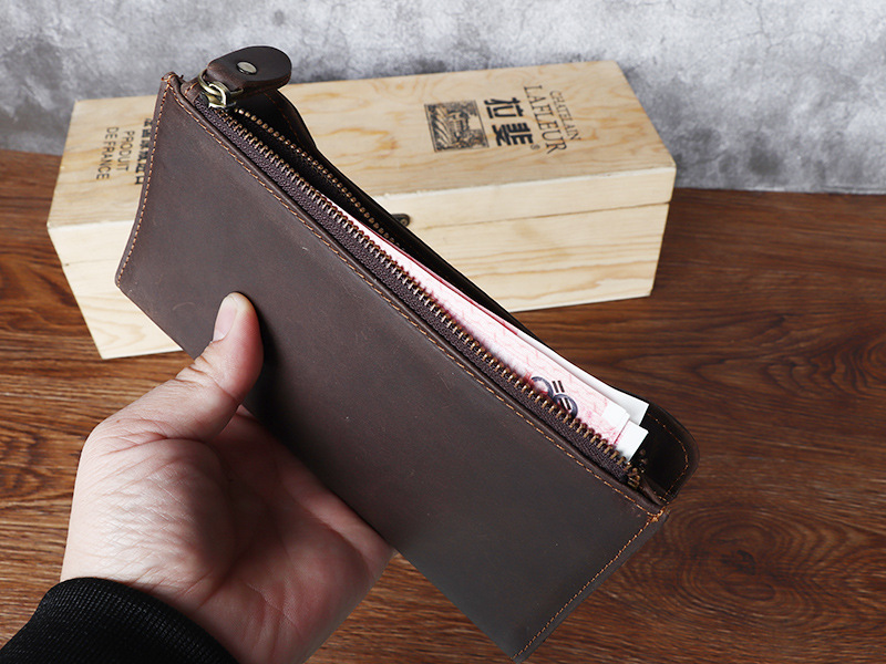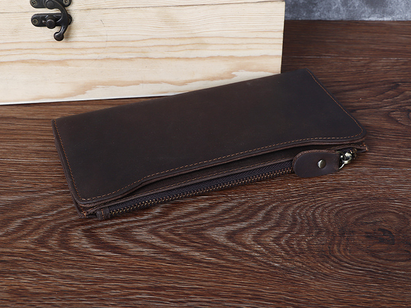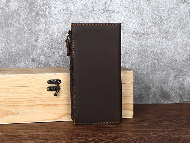 Ví da nam kiểu dáng dài, được làm từ lớp da bò thật đầu tiên với bề mặt tạo hiệu ứng vân tự nhiên. Thiết kế phong cách cổ điển kết hợp khóa cài chắc chắn, mang đến vẻ đẹp mộc mạc và cá tính. Sản phẩm có nhiều ngăn rộng rãi, dễ dàng sắp xếp tiền mặt và các loại thẻ. Khi sử dụng, bạn chỉ cần mở khóa cài là có thể lấy đồ bên trong thuận tiện. | Tên sản phẩm: Ví Bóp Nam Chất Liệu Da Bò Phục Cổ Cổ Điển - Túi Xách Ví Nam | Mã sản phẩm: A5147 - Giá: 670.000đ | Mã nhà sản xuất: GUDAT-G02Hình ảnh sản phẩm
