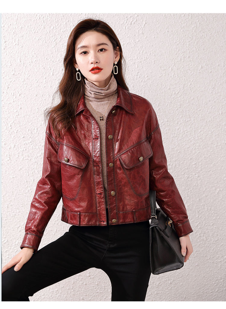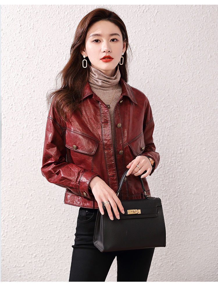 Áo khoác da cổ điển dành cho nữ, thiết kế kiểu dáng ngắn gọn phù hợp với nhiều dáng người. Chất liệu từ da cừu non xử lý kỹ thuật dầu sáp, tạo bề mặt mềm mại và độ bền tốt. Kiểu áo jacket này dễ dàng phối cùng quần jeans và váy. Mặc kèm áo thun bên trong để tạo vẻ ngoài trẻ trung, hoặc kết hợp với áo sơ mi cho dịp cần sự chỉn chu. Giữ sản phẩm nơi khô ráo, tránh ánh nắng trực tiếp. | Tên sản phẩm: Áo Da Nữ Chất Liệu Da Bò Hàng Mùa Xuân Thu Đông - Thời Trang Nữ | Mã sản phẩm: a5168 - Giá: 5.090.000đ | Mã nhà sản xuất: HADG-G06Hình ảnh sản phẩm