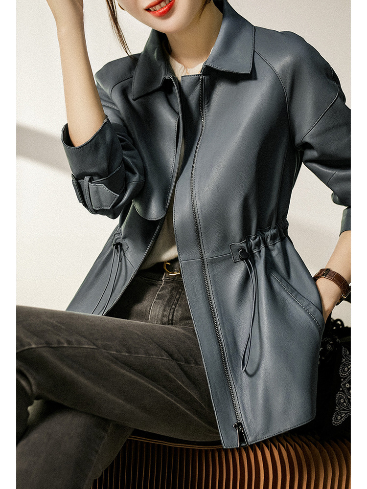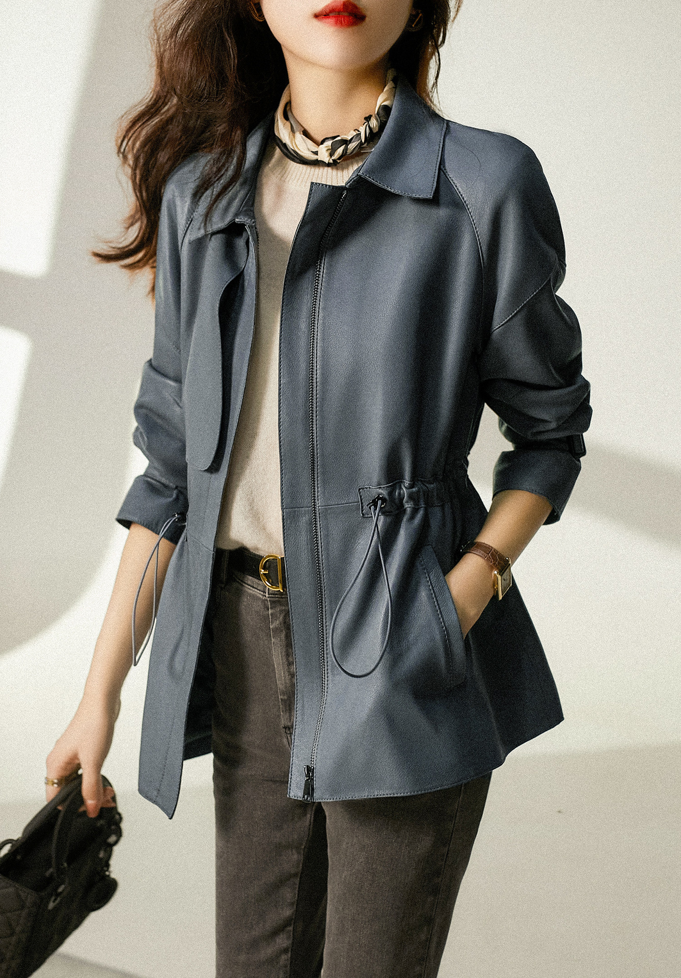 Áo khoác da thật dành cho nữ, kiểu dáng ngắn gọn phù hợp tiết trời thu. Chất liệu da cừu non mềm mại, mang đến cảm giác dễ chịu khi mặc. Thiết kế cổ vuông thanh lịch kết hợp dây rút eo tạo điểm nhấn, giúp tôn dáng người mặc. Sản phẩm có thể phối hợp với nhiều trang phục như quần jeans hay váy liền. Sử dụng hàng ngày và bảo quản nơi khô ráo để giữ độ bền đẹp cho áo. | Tên sản phẩm: Áo Da Nữ Chất Liệu Da Bò Hàng Mùa Xuân Thu Đông Phong Cách Hàn Quốc - Thời Trang Nữ | Mã sản phẩm: a5174 - Giá: 5.830.000đ | Mã nhà sản xuất: HADG-G06Hình ảnh sản phẩm