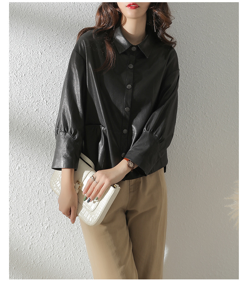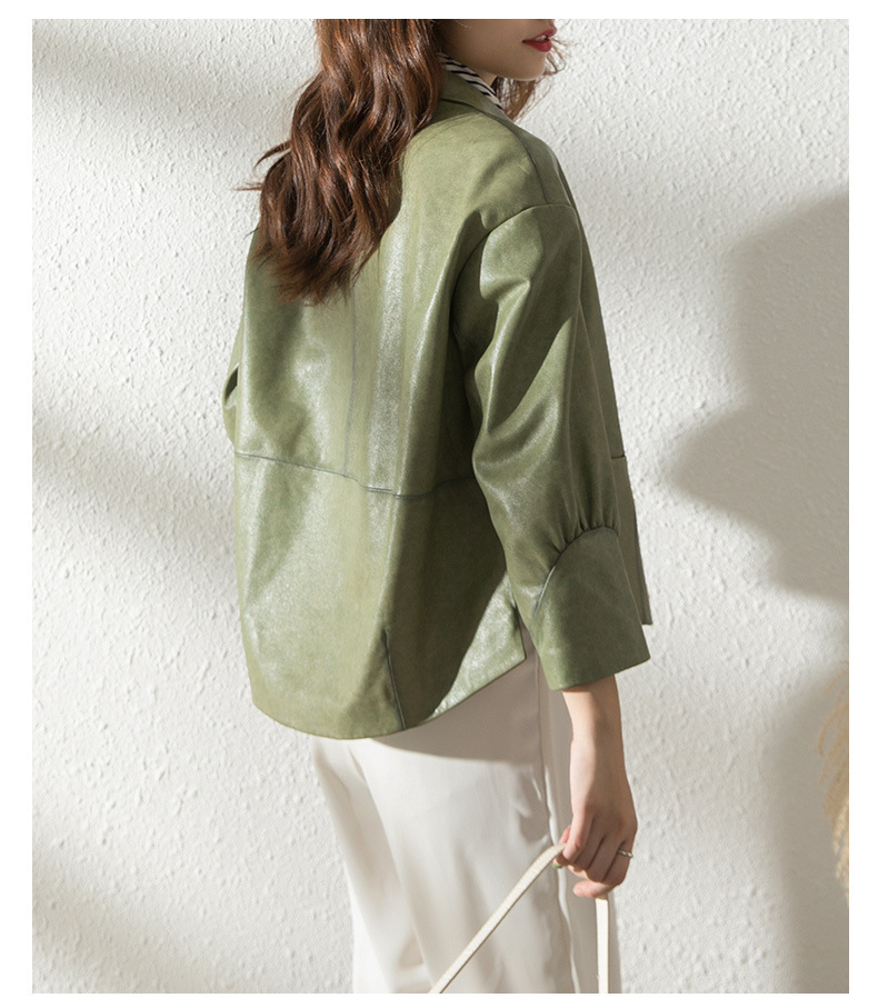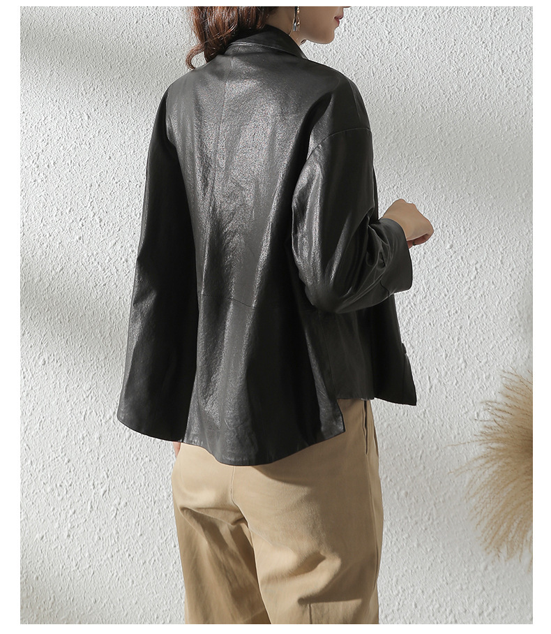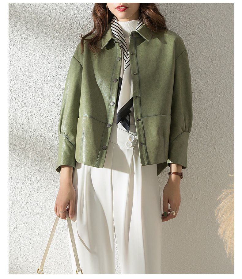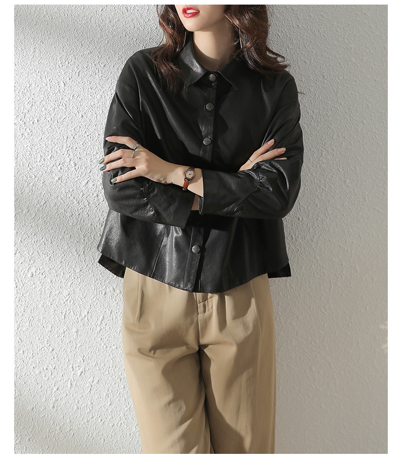 Áo khoác da thật dáng ngắn dành cho nữ, kiểu dáng phong cách mạnh mẽ phù hợp tiết trời mát mẻ. Chất liệu da mềm mại, thiết kế form rộng thoải mái tạo cảm giác dễ chịu khi mặc. Sản phẩm có thể kết hợp cùng quần jeans hoặc chân váy để tạo điểm nhấn. Mặc kèm áo thun hoặc áo len bên trong để giữ ấm nhẹ. Dùng khăn mềm ẩm lau nhẹ bề mặt sau khi sử dụng. | Tên sản phẩm: Áo Da Nữ Chất Liệu Da Bò Hàng Mùa Xuân Thu Đông - Thời Trang Nữ | Mã sản phẩm: a5197 - Giá: 5.370.000đ | Mã nhà sản xuất: HADG-G06Hình ảnh sản phẩm