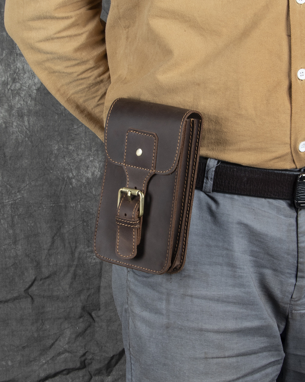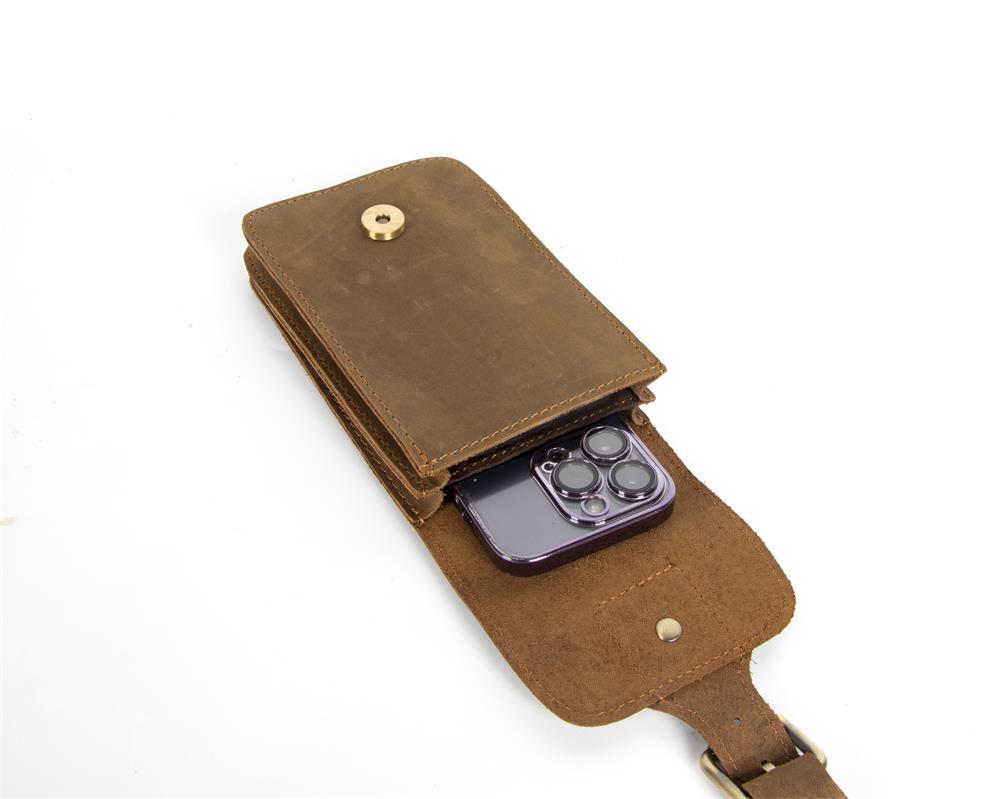 Chiếc túi đeo điện thoại này làm từ chất da bò thật, có bề mặt vân mây tự nhiên và độ bền cao. Thiết kế dáng đứng, có dây đeo linh hoạt để giữ bên hông quần hoặc cố định vào thắt lưng một cách chắc chắn. Sản phẩm thích hợp dùng khi vận động hay di chuyển, giúp bảo vệ máy điện thoại và đựng thêm một số vật dụng nhỏ cần thiết. Cách dùng đơn giản, chỉ cần luồn dây vào thắt lưng và điều chỉnh độ dài vừa ý. | Tên sản phẩm: Túi Xách Nam Chất Liệu Da Bò Trung Niên - Túi Xách Ví Nam | Mã sản phẩm: A5246 - Giá: 610.000đ | Mã nhà sản xuất: GUDAT-G02Hình ảnh sản phẩm