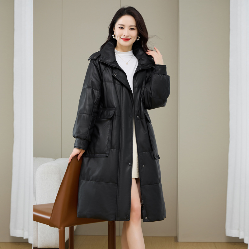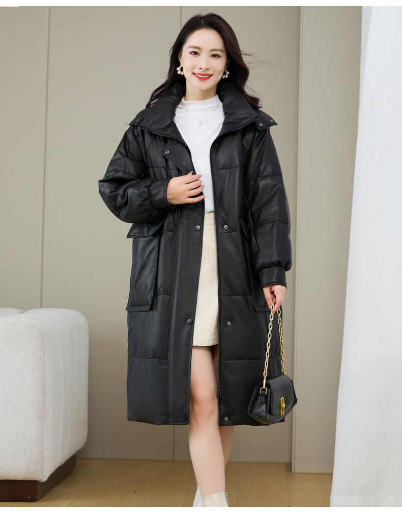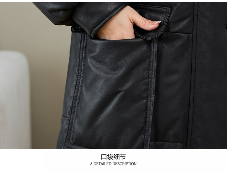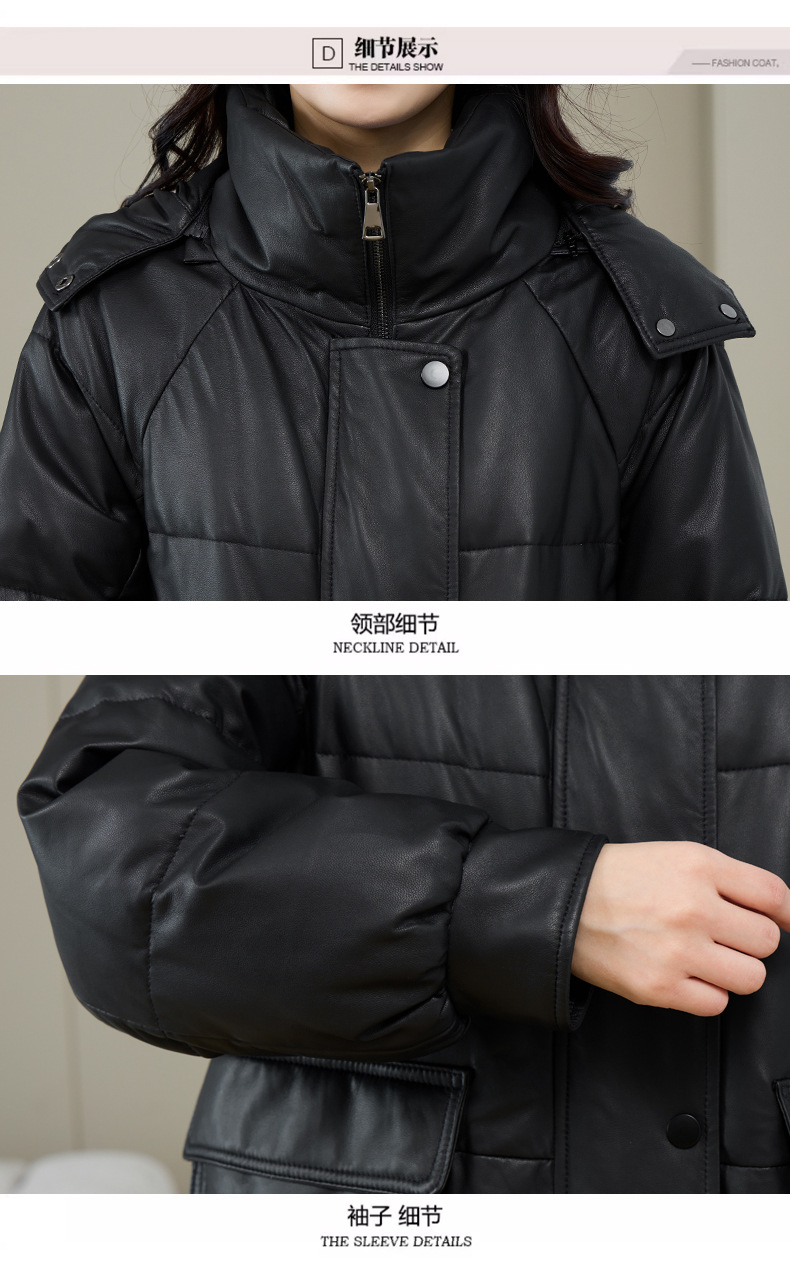 Áo khoác nữ dáng thụng thoải mái, có mũ trùm tiện lợi cho những ngày trời lạnh. Sản phẩm được làm từ da cừu non mềm mại, bên trong là lớp lông vũ giữ ấm hiệu quả. Kiểu dáng phù hợp cho việc đi chơi, dạo phố hay các sinh hoạt thường ngày. Mặc kèm với áo thun và quần jeans để có vẻ ngoại hình trẻ trung, năng động. | Tên sản phẩm: Áo Da Nữ Chất Liệu Da Bò Mũ Liền Hàng Mùa Xuân Thu Đông - Thời Trang Nữ | Mã sản phẩm: a5266 - Giá: 7.220.000đ | Mã nhà sản xuất: HADG-G06Hình ảnh sản phẩm