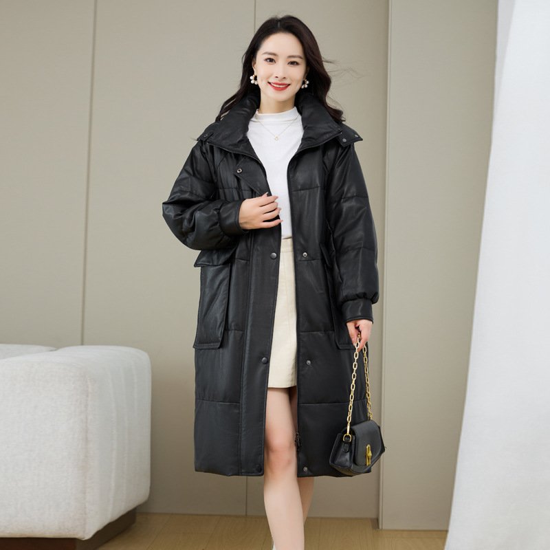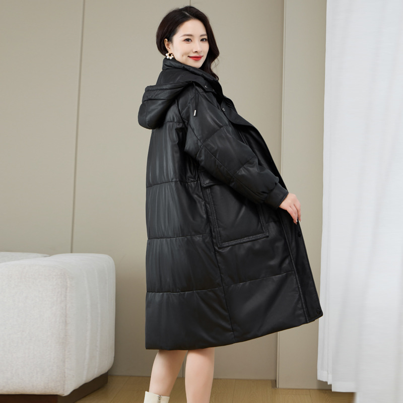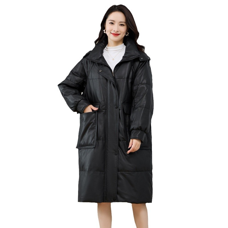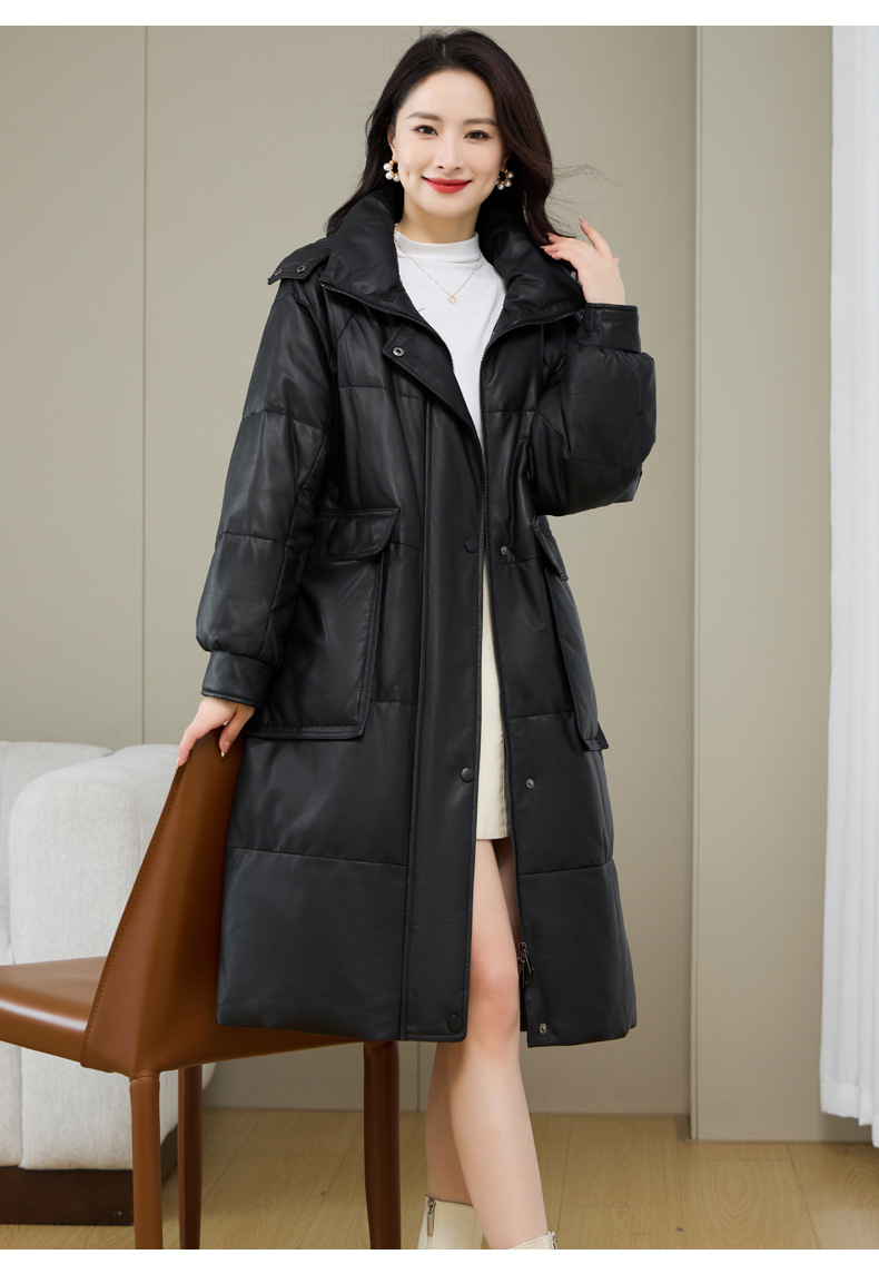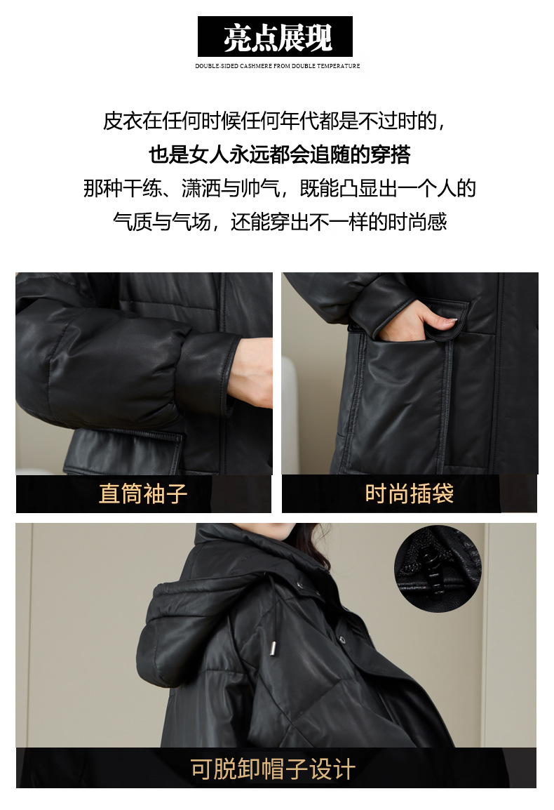 Áo khoác nữ dáng thụng thoải mái, có mũ trùm tiện lợi cho những ngày trời lạnh. Sản phẩm được làm từ da cừu non mềm mại, bên trong là lớp lông vũ giữ ấm hiệu quả. Kiểu dáng phù hợp cho việc đi chơi, dạo phố hay các sinh hoạt thường ngày. Mặc kèm với áo thun và quần jeans để có vẻ ngoại hình trẻ trung, năng động. | Tên sản phẩm: Áo Da Nữ Chất Liệu Da Bò Mũ Liền Hàng Mùa Xuân Thu Đông - Thời Trang Nữ | Mã sản phẩm: a5266 - Giá: 7.220.000đ | Mã nhà sản xuất: HADG-G06Hình ảnh sản phẩm