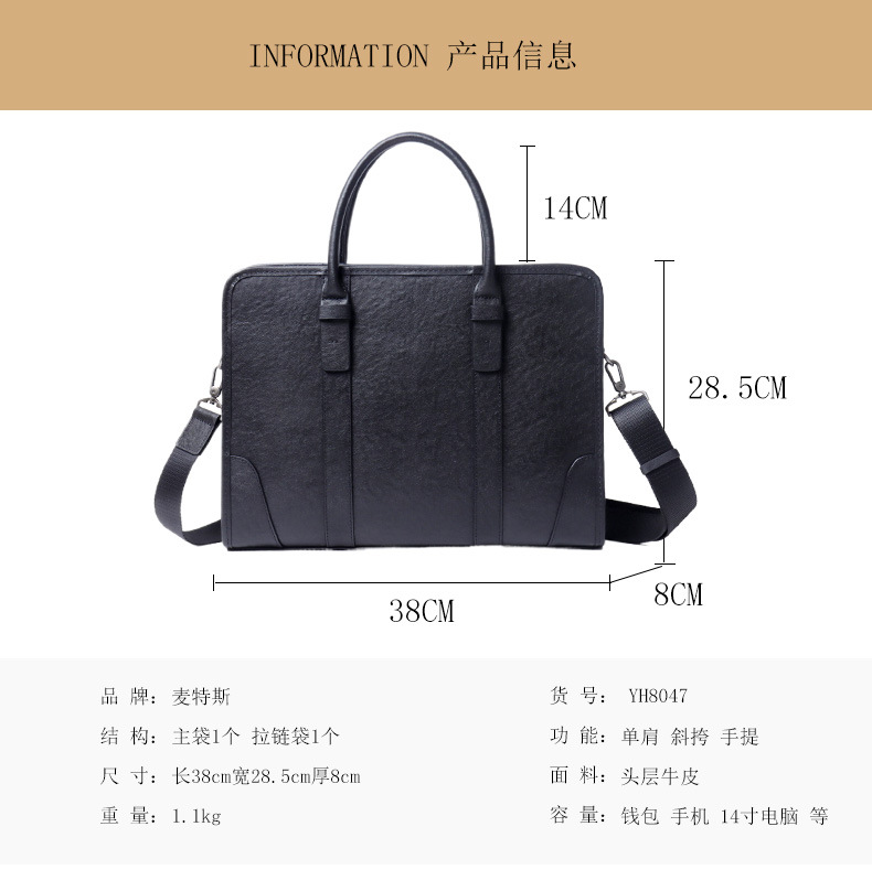 Chiếc cặp công sở dành cho nam, được làm từ chất liệu da thật tự nhiên. Bề mặt da có đường vân mịn và độ bền cao theo thời gian. Thiết kế nhiều ngăn riêng biệt giúp sắp xếp giấy tờ, máy tính và các vật dụng cá nhân gọn gàng. Có qu xách chắc chắn và dây đeo v tiện lợi cho nhiều cách mang. Sử dụng hàng ngày để đựng tài liệu làm việc, dễ dàng bảo quản bằng cách lau sạch với khăn mềm. | Tên sản phẩm: Túi Xách Nam Chất Liệu Da Bò Túi Đựng Máy Tính - Túi Xách Ví Nam | Mã sản phẩm: A5280 - Giá: 1.820.000đ | Mã nhà sản xuất: GUDAT-G05Hình ảnh sản phẩm