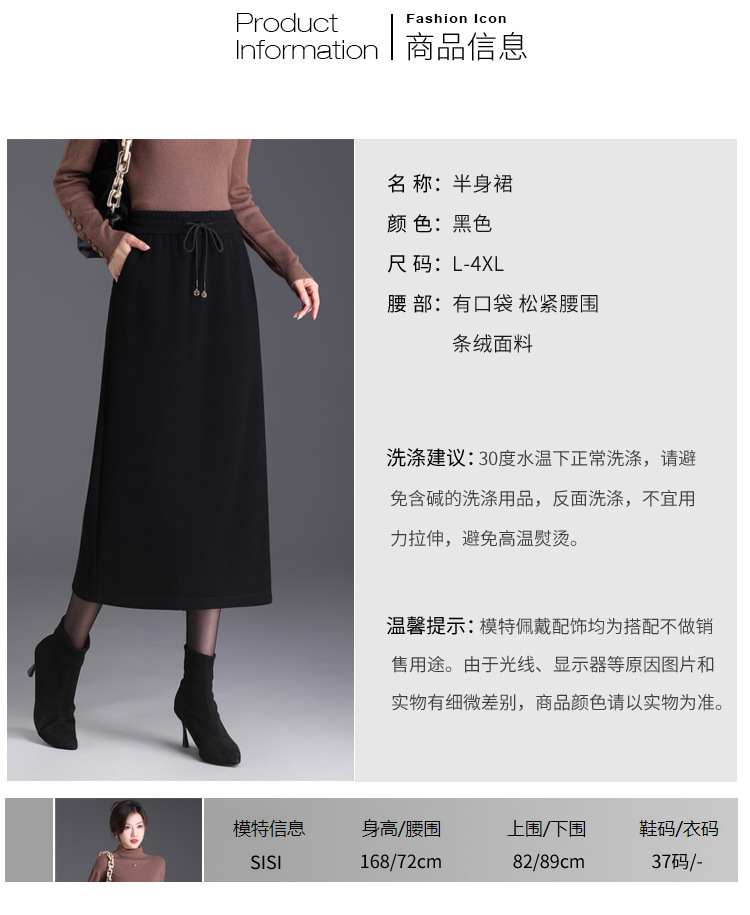 Chiếc váy dáng dài qua gối, được may từ chất liệu nhung gân thời thượng. Thiết kế ôm vừa vặn ở phần eo và hông, tạo dáng thanh lịch. Đây là kiểu váy một hàng khuy, dễ dàng phối hợp với nhiều loại áo khác nhau. Bạn có thể mặc đi làm, đi chơi hoặc dự các cuộc gặp mặt thân mật. Sản phẩm phù hợp cho những ngày thu đông. | Tên sản phẩm: Chân Váy Đầm Nữ Hàng Mùa Xuân Thu Đông - Thời Trang Nữ | Mã sản phẩm: a5360 - Giá: 720.000đ | Mã nhà sản xuất: WUDAN-G02Hình ảnh sản phẩm