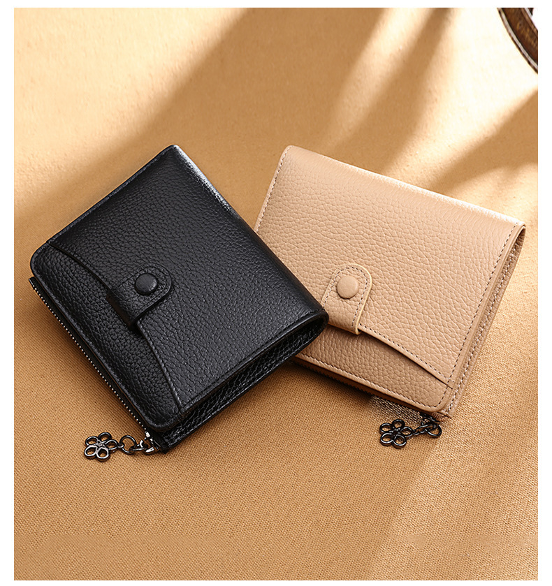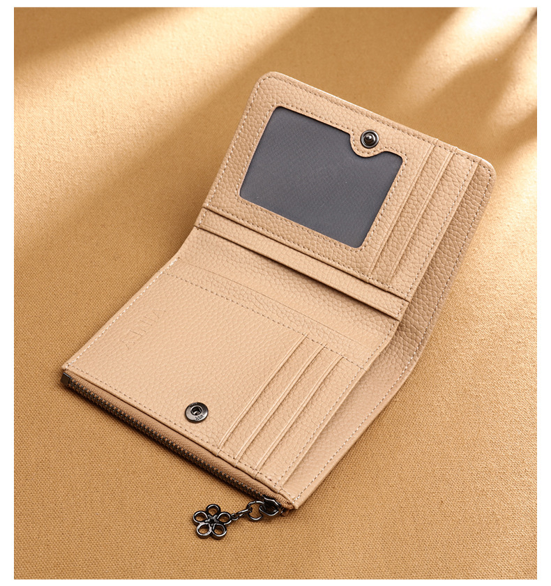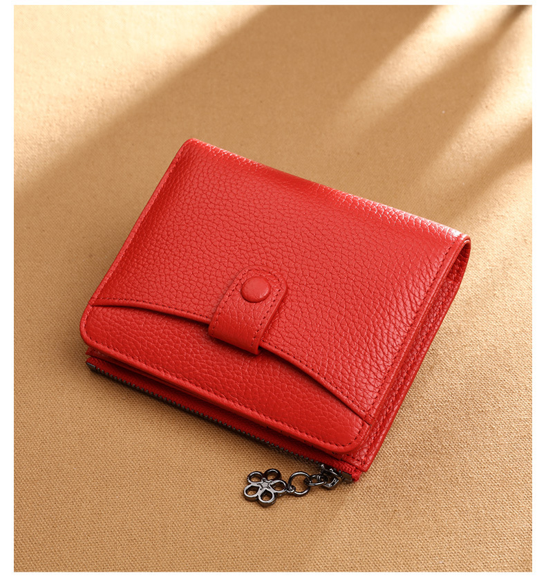 Chiếc ví nữ mới này có kích thước nhỏ gọn, kiểu dáng hai lần gấp với khóa kéo tiện lợi. Sản phẩm được làm từ chất liệu da thật, mang đến cảm giác mềm mại và bền bỉ. Thiết kế theo phong cách trẻ trung, hiện đại với những đường nét tinh tế. Bạn có thể dễ dàng đựng tiền mặt, thẻ và một số vật dụng cá nhân nhỏ. Chỉ cần mở khóa kéo để lấy đồ hoặc cất giữ an toàn. | Tên sản phẩm: Ví Bóp Nữ Chất Liệu Da Bò Phong Cách Hàn Quốc - Túi Ví Nữ | Mã sản phẩm: A5376 - Giá: 650.000đ | Mã nhà sản xuất: GUDEA-G02Hình ảnh sản phẩm