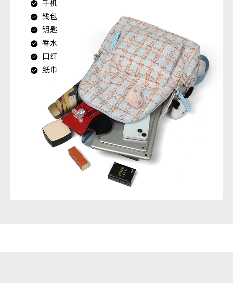 Ba lô hai qu dành cho nữ, kiểu dáng mới phù hợp cho mùa hè. Thiết kế nhẹ nhàng, dễ mang theo khi đến trường hoặc đi chơi xa. Mặt trước có họa tiết kẻ ô vuông tạo điểm nhấn nổi bật. Ngăn chứa đồ rộng rãi, đựng vừa sách vở, bình nước và các vật dụng cá nhân cần thiết. Chỉ cần đeo hai qu lên v, điều chỉnh dây đeo cho vừa vặn là có thể sử dụng ngay. | Tên sản phẩm: Túi Đeo Vai Nữ Kẻ Caro Kẻ Caro Hàng Mùa Hè - Túi Ví Nữ | Mã sản phẩm: A5505 - Giá: 1.230.000đ | Mã nhà sản xuất: GUDEA-G04Hình ảnh sản phẩm