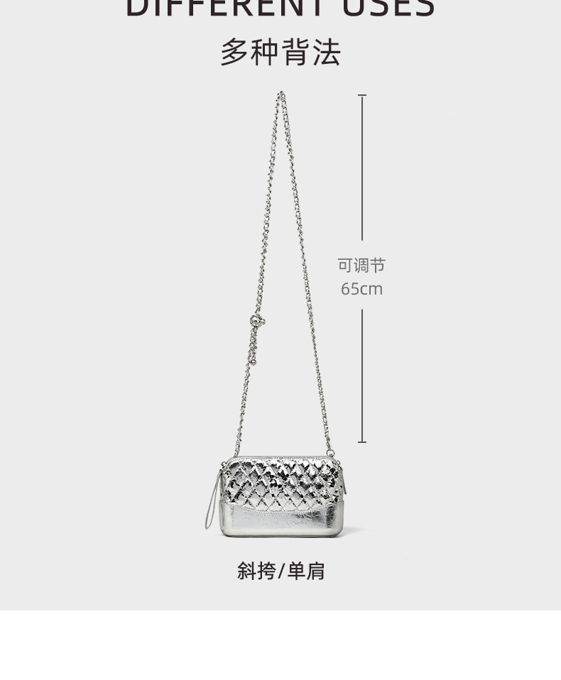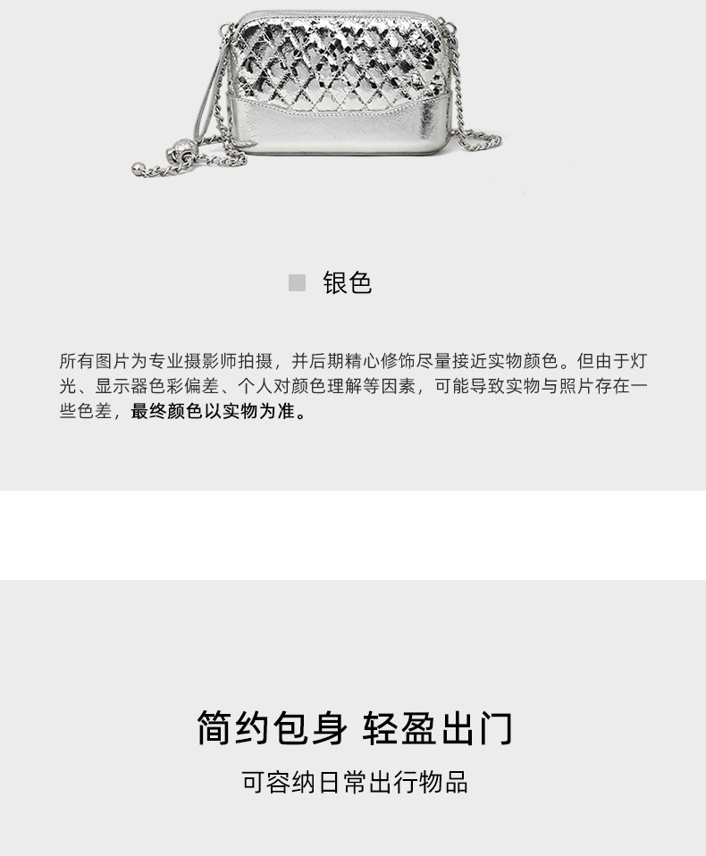 Túi xách nữ thiết kế dáng vuông nhỏ gọn, phù hợp mang trong nhiều dịp. Điểm nhấn là dây đeo chuỗi hạt cầu tròn sáng bóng cùng màu bạc thời thượng. Kiểu túi có thể đeo chéo người hoặc xách tay một cách thoải mái. Chất liệu bền đẹp, nhiều ngăn tiện lợi để đựng ví, điện thoại và các vật dụng cá nhân. Dễ dàng phối hợp với nhiều trang phục khác nhau, tạo nên vẻ năng động và trẻ trung. | Tên sản phẩm: Túi Xách Nữ Hàng Mùa Hè - Túi Ví Nữ | Mã sản phẩm: A5597 - Giá: 1.230.000đ | Mã nhà sản xuất: GUDEA-G04Hình ảnh sản phẩm