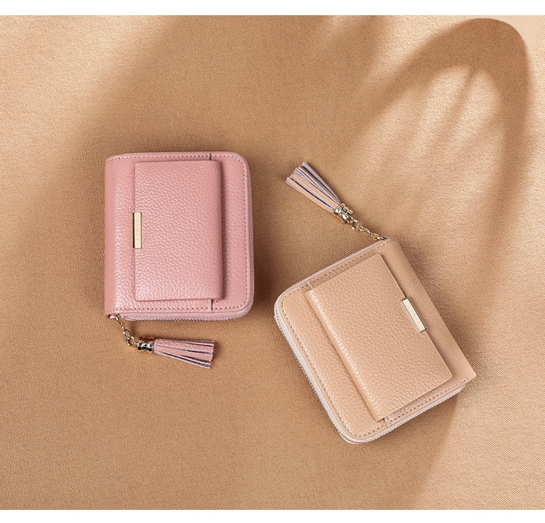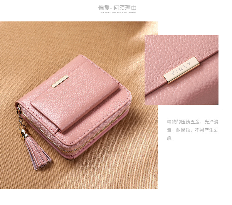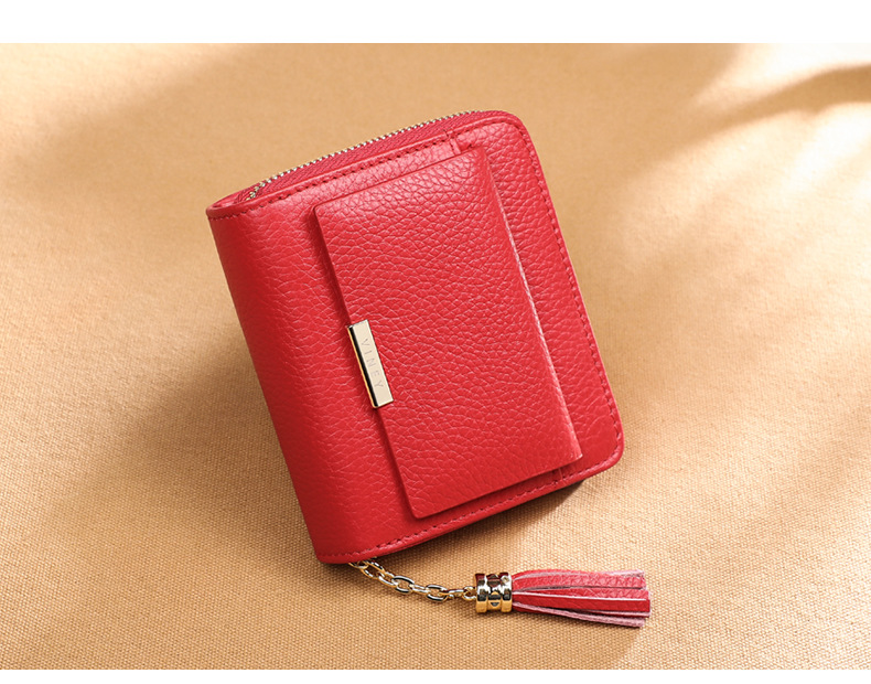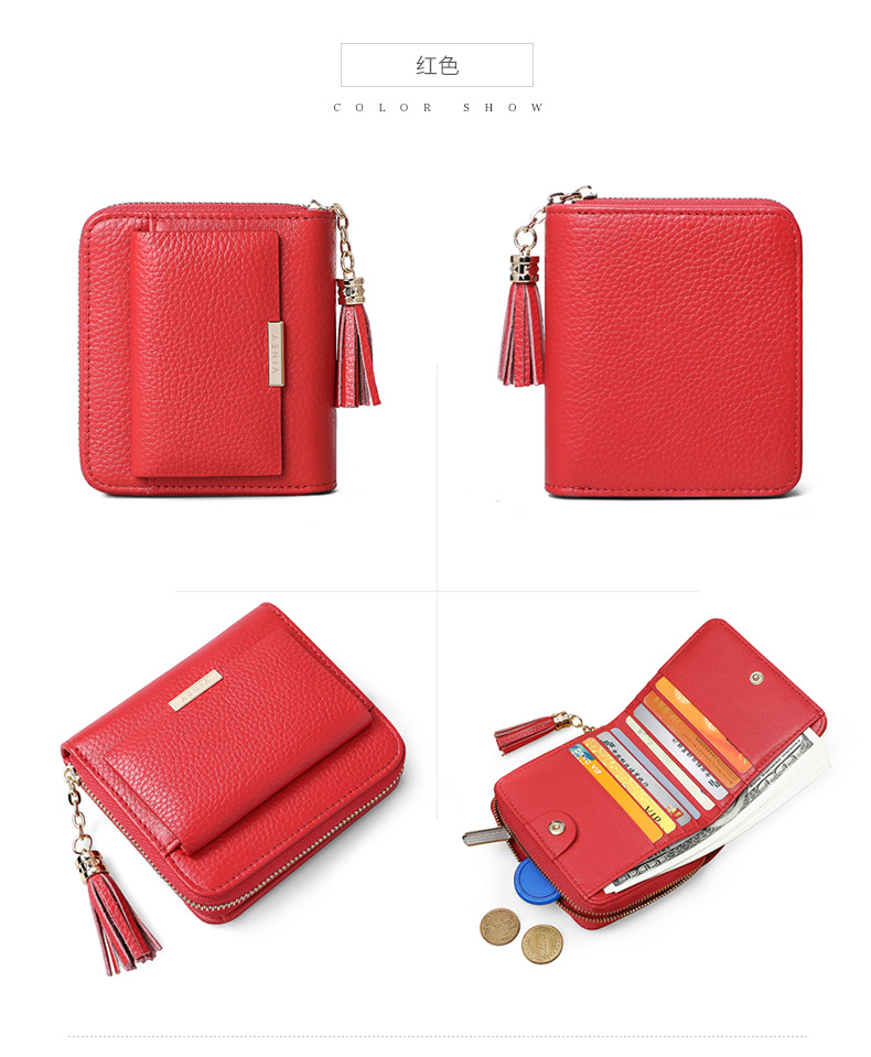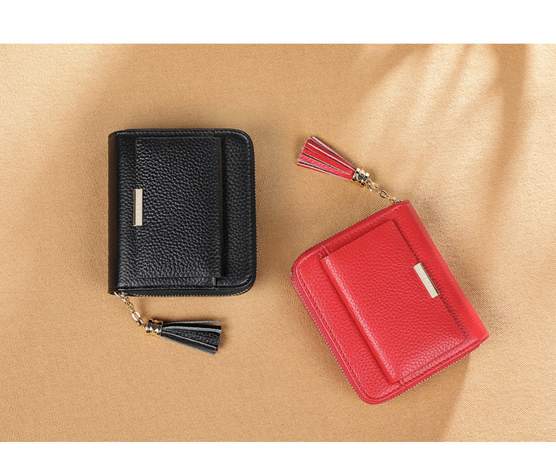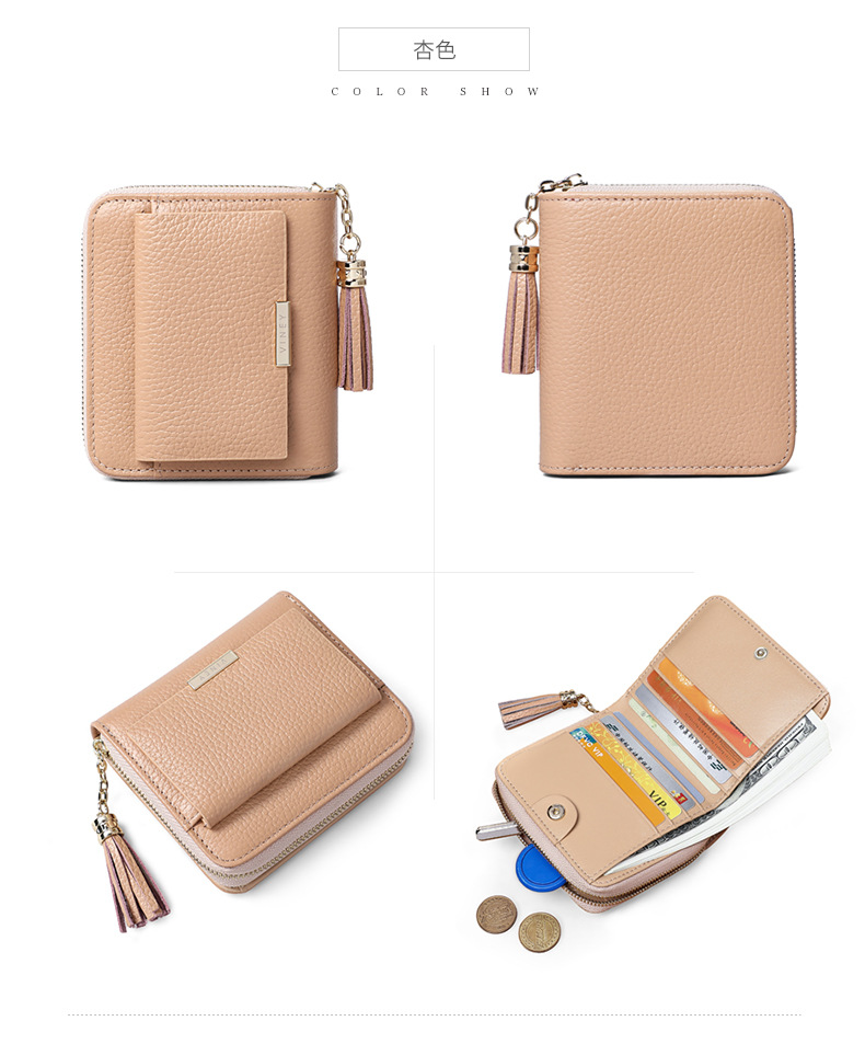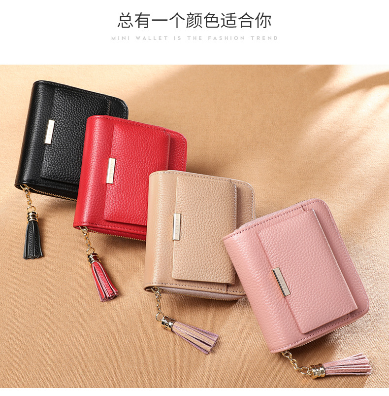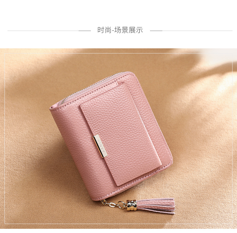 Ví tiền nữ dáng ngắn với dây kéo tiện lợi, được làm từ chất liệu da thật, kiểu gập đôi nhỏ gọn. Thiết kế trẻ trung, có gắn thêm tua rua duyên dáng và ngăn đựng tiền lẻ riêng biệt. Kiểu dáng phù hợp cho cả nam và nữ khi sử dụng. Bạn chỉ cần mở khóa kéo để lấy tiền và thẻ, rất dễ dàng khi mang theo bên mình mỗi ngày. | Tên sản phẩm: Ví Bóp Nữ Chất Liệu Da Bò Đồ Đôi Phong Cách Hàn Quốc - Túi Ví Nữ | Mã sản phẩm: A5604 - Giá: 650.000đ | Mã nhà sản xuất: GUDEA-G02Hình ảnh sản phẩm