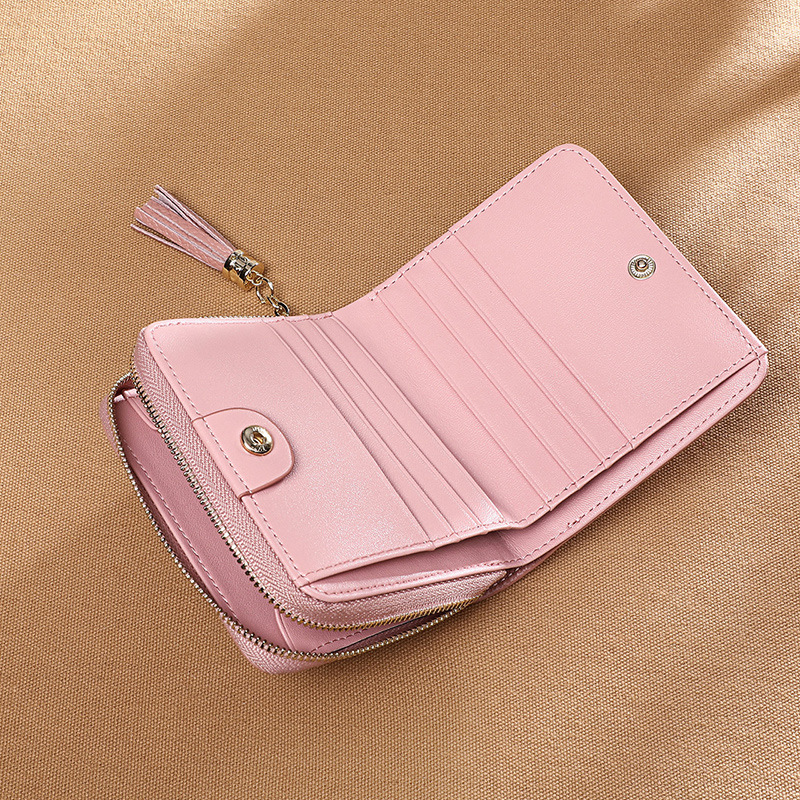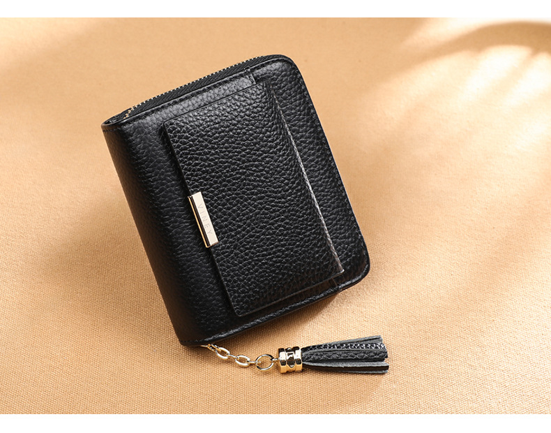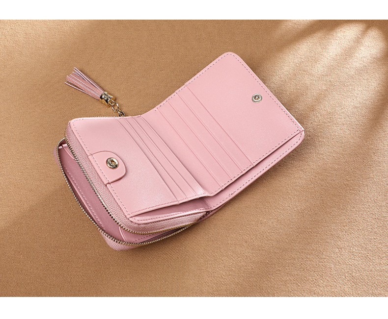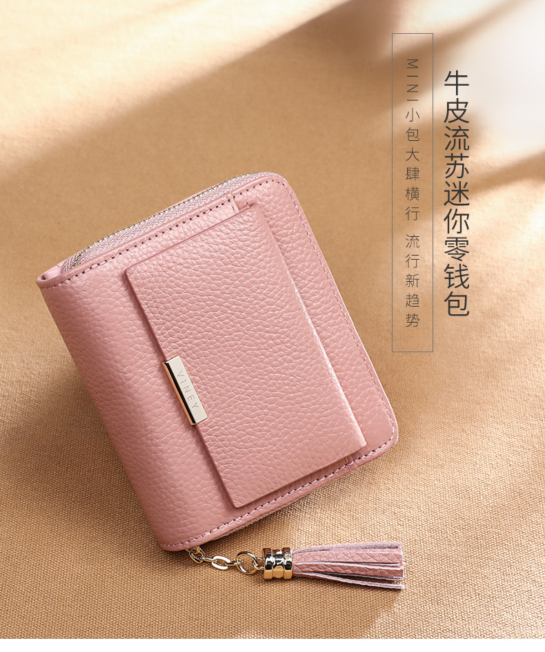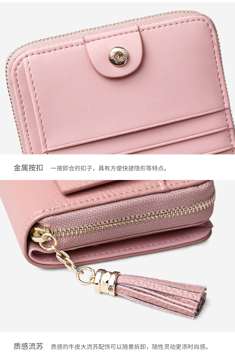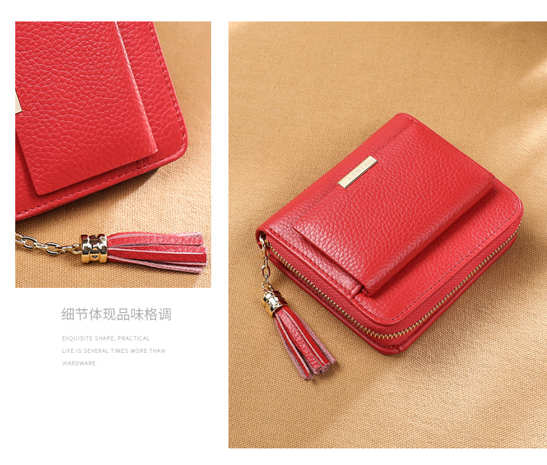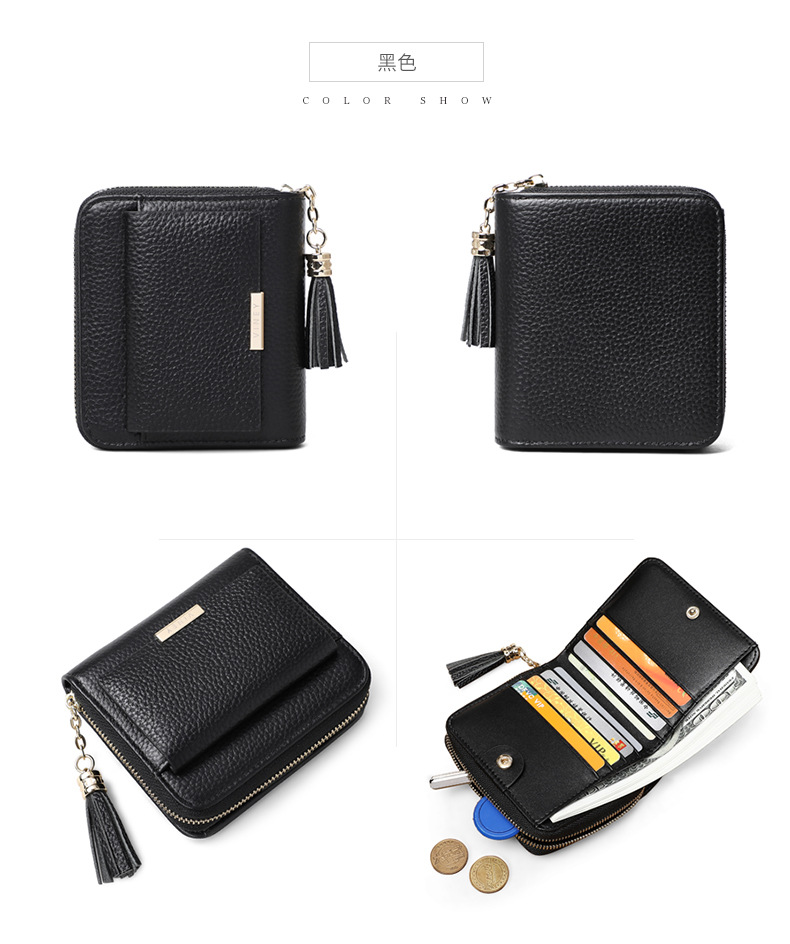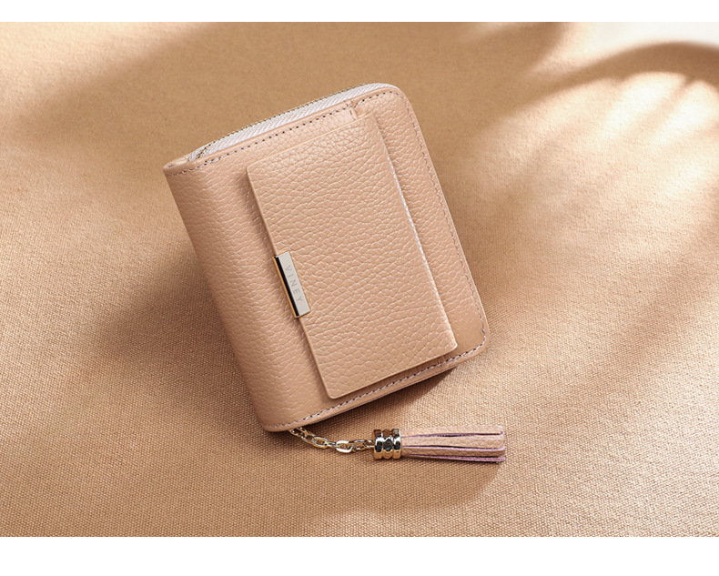 Ví tiền nữ dáng ngắn với dây kéo tiện lợi, được làm từ chất liệu da thật, kiểu gập đôi nhỏ gọn. Thiết kế trẻ trung, có gắn thêm tua rua duyên dáng và ngăn đựng tiền lẻ riêng biệt. Kiểu dáng phù hợp cho cả nam và nữ khi sử dụng. Bạn chỉ cần mở khóa kéo để lấy tiền và thẻ, rất dễ dàng khi mang theo bên mình mỗi ngày. | Tên sản phẩm: Ví Bóp Nữ Chất Liệu Da Bò Đồ Đôi Phong Cách Hàn Quốc - Túi Ví Nữ | Mã sản phẩm: A5604 - Giá: 650.000đ | Mã nhà sản xuất: GUDEA-G02Hình ảnh sản phẩm