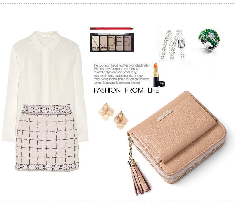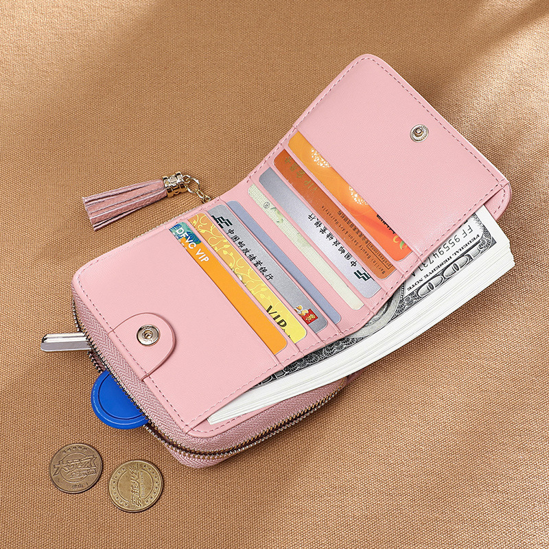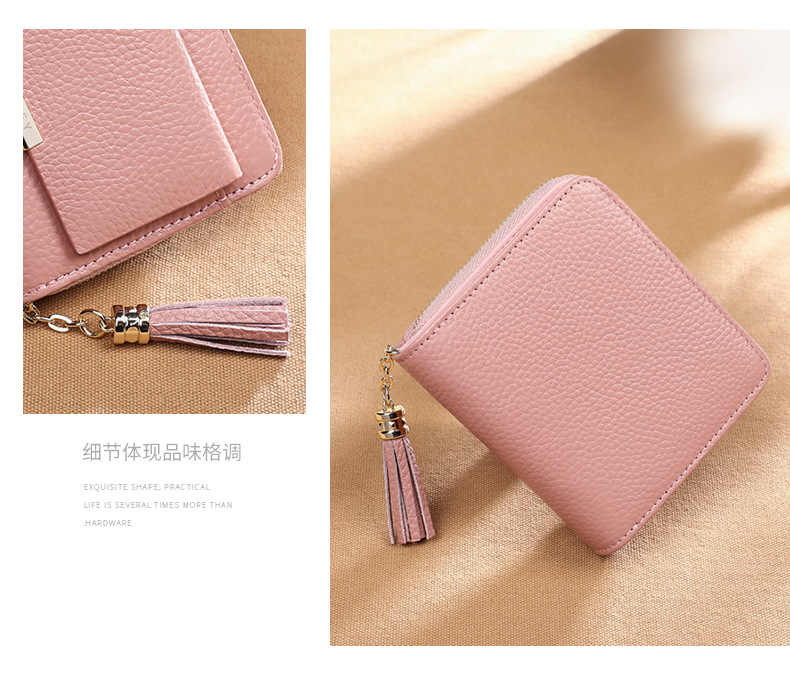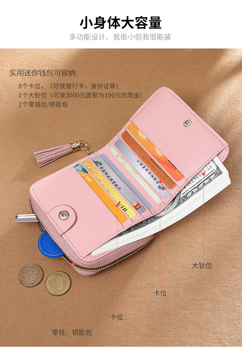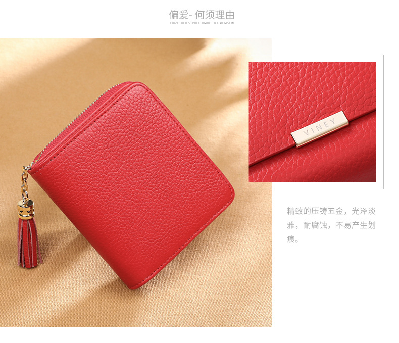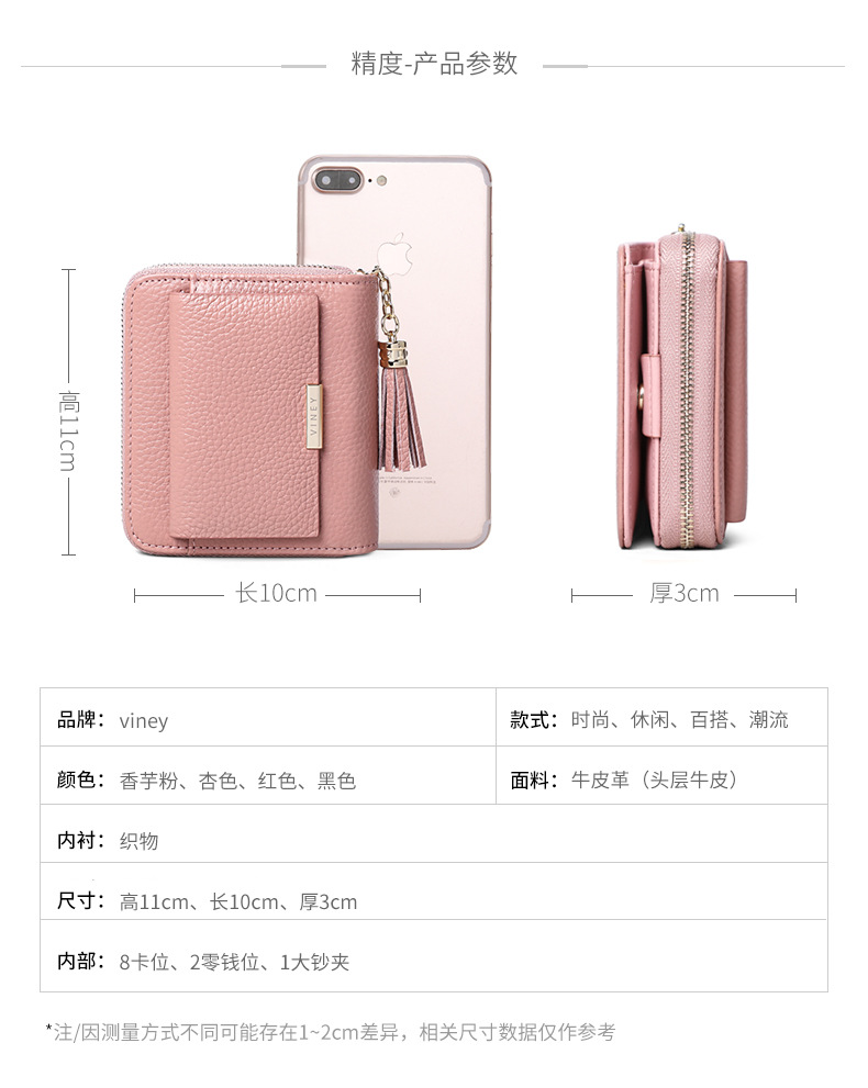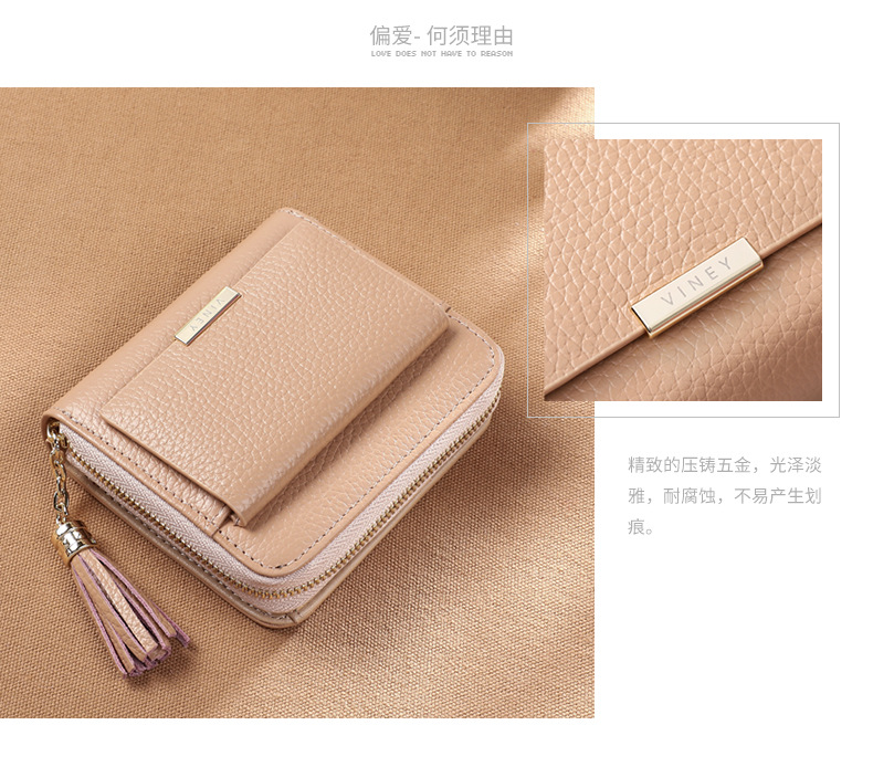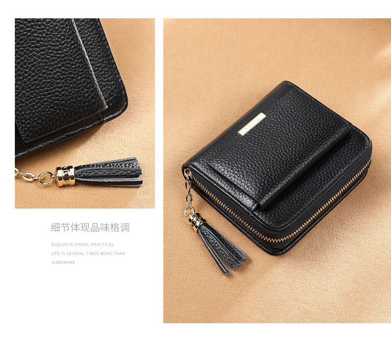 Ví tiền nữ dáng ngắn với dây kéo tiện lợi, được làm từ chất liệu da thật, kiểu gập đôi nhỏ gọn. Thiết kế trẻ trung, có gắn thêm tua rua duyên dáng và ngăn đựng tiền lẻ riêng biệt. Kiểu dáng phù hợp cho cả nam và nữ khi sử dụng. Bạn chỉ cần mở khóa kéo để lấy tiền và thẻ, rất dễ dàng khi mang theo bên mình mỗi ngày. | Tên sản phẩm: Ví Bóp Nữ Chất Liệu Da Bò Đồ Đôi Phong Cách Hàn Quốc - Túi Ví Nữ | Mã sản phẩm: A5604 - Giá: 650.000đ | Mã nhà sản xuất: GUDEA-G02Hình ảnh sản phẩm
