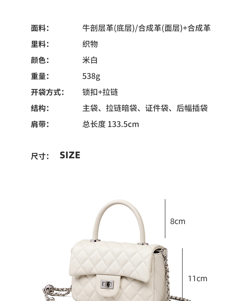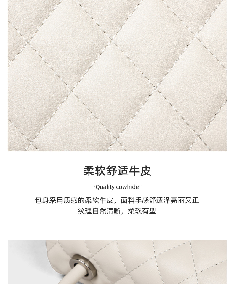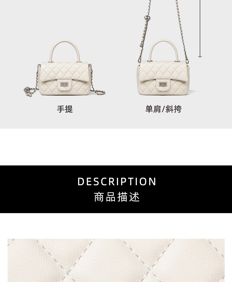 Túi xách dành cho nữ, kiểu dáng mới cho mùa hè. Mặt túi có họa tiết hình thoi đều đặn, được làm từ chất liệu da mềm mịn. Qu xách kết hợp giữa dây xích và qu cầm tay, giúp bạn có thể đeo v hoặc xách tay một cách linh hoạt. Thiết kế nhỏ gọn nhưng vẫn đủ rộng để đựng các vật dụng cần thiết hàng ngày như ví, điện thoại. Rất phù hợp để sử dụng khi đi làm, đi chơi hay dạo phố. | Tên sản phẩm: Túi Xách Nữ Chất Liệu Da Bò Kẻ Caro Kẻ Caro Hàng Mùa Hè - Túi Ví Nữ | Mã sản phẩm: A5614 - Giá: 1.380.000đ | Mã nhà sản xuất: GUDEA-G04Hình ảnh sản phẩm
