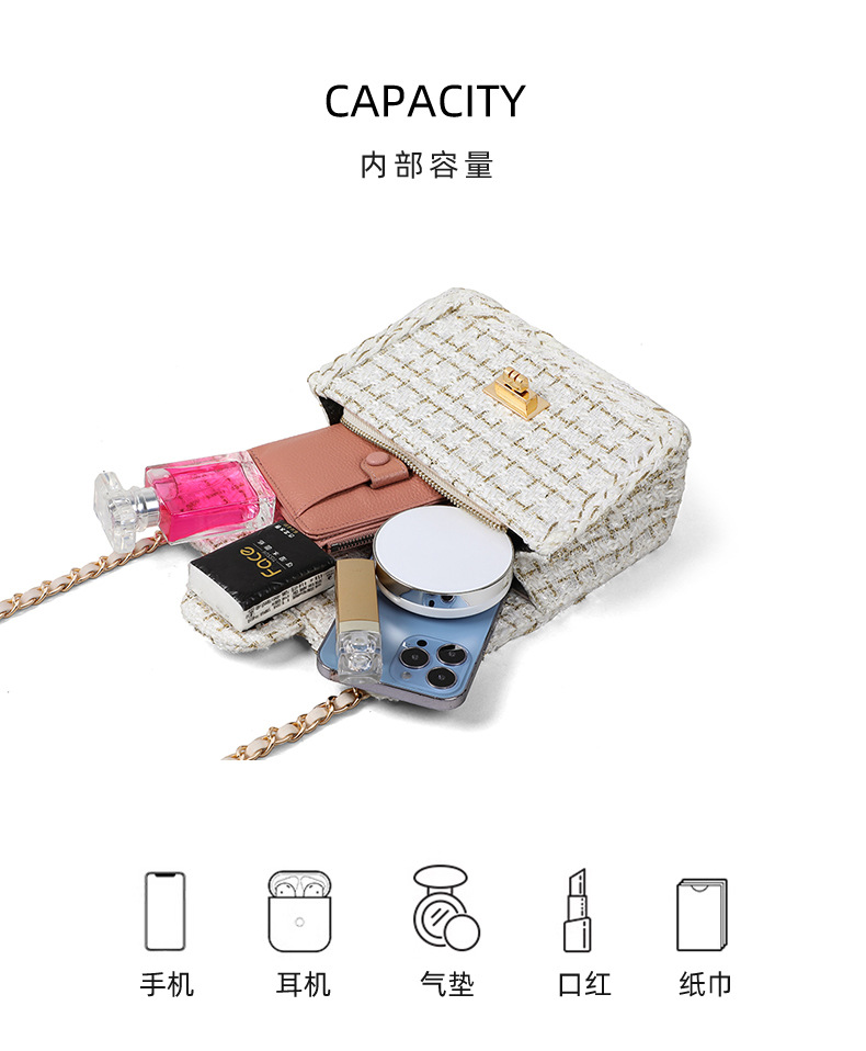 Túi xách mẫu mới, thiết kế nhỏ gọn dạng hộp vuông điệu đà. Dây đeo làm từ các mắt xích kim loại có thể điều chỉnh, cho phép bạn mang làm túi đeo chéo hoặc túi đeo dưới cánh tay một cách linh hoạt. Phong cách thiết kế mang nét thanh lịch, nhẹ nhàng. Rất dễ sử dụng, chỉ cần đeo v và kéo khóa kín đáo là bạn đã có ngay một phụ kiện hoàn hảo cho những buổi gặp gỡ hàng ngày. | Tên sản phẩm: Túi Xách Nữ Hàng Mùa Hè - Túi Ví Nữ | Mã sản phẩm: A5623 - Giá: 1.370.000đ | Mã nhà sản xuất: GUDEA-G04Hình ảnh sản phẩm