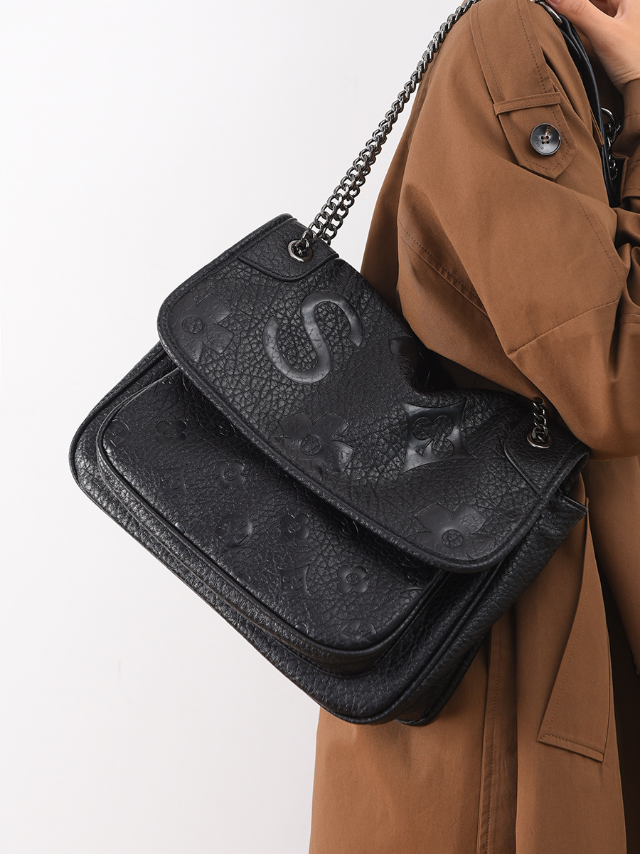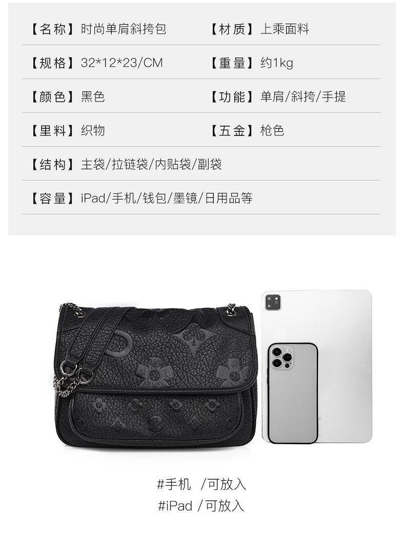 Chiếc túi đeo chéo này có thiết kế một qu đeo độc đáo, kiểu dáng cổ điển và phóng khoáng. Chất liệu da mềm mịn với họa tiết nổi được dập nổi tinh tế, tạo vẻ ngoài thời trang và có chiều sâu. Túi có sức chứa lớn, rất tiện lợi để đựng các vật dụng cá nhân hằng ngày. Có thể đeo chéo một cách thoải mái hoặc xách tay tùy thích, phù hợp cho nhiều hoàn cảnh sử dụng khác nhau. | Tên sản phẩm: Túi Đeo Vai Nữ Họa Tiết Hoa - Túi Ví Nữ | Mã sản phẩm: A5806 - Giá: 850.000đ | Mã nhà sản xuất: BADM-G03Hình ảnh sản phẩm