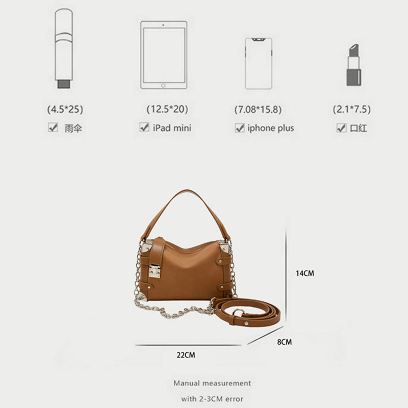 Túi xách thiết kế dây đeo chéo linh hoạt, kết hợp dây xích và qu cầm tay. Kiểu dáng đơn giản, hiện đại, phù hợp cho các dịp đi chơi, dạo phố. Chất liệu bền nhẹ, có ngăn rộng đựng được ví, điện thoại và các vật dụng cá nhân. Dễ dàng phối hợp với nhiều loại trang phục như quần jeans, áo thun hay đầm vải mỏng, tạo nên vẻ ngoại hình năng động và trẻ trung. | Tên sản phẩm: Túi Xách Nữ Hàng Mùa Hè - Túi Ví Nữ | Mã sản phẩm: A5813 - Giá: 700.000đ | Mã nhà sản xuất: BADM-G02Hình ảnh sản phẩm