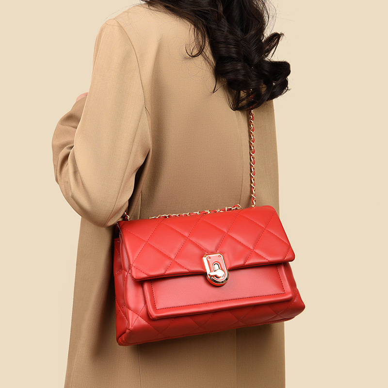Túi xách kiểu dáng mới, thiết kế đeo chéo hoặc vắt v một cách tiện lợi. Điểm nhấn là các đường vân hình viên kim cương nổi bật cùng dây đeo chuỗi hạt tinh tế. Chất liệu mềm mại giúp túi có sức chứa rộng rãi nhưng vẫn giữ được hình dáng. Kiểu túi này rất phù hợp để sử dụng hàng ngày, dễ dàng phối hợp với nhiều trang phục khác nhau, mang đến vẻ ngoài năng động và hiện đại. | Tên sản phẩm: Túi Đeo Vai Nữ Kẻ Caro Kẻ Caro - Túi Ví Nữ | Mã sản phẩm: A5827 - Giá: 700.000đ | Mã nhà sản xuất: BADM-G02Hình ảnh sản phẩm
