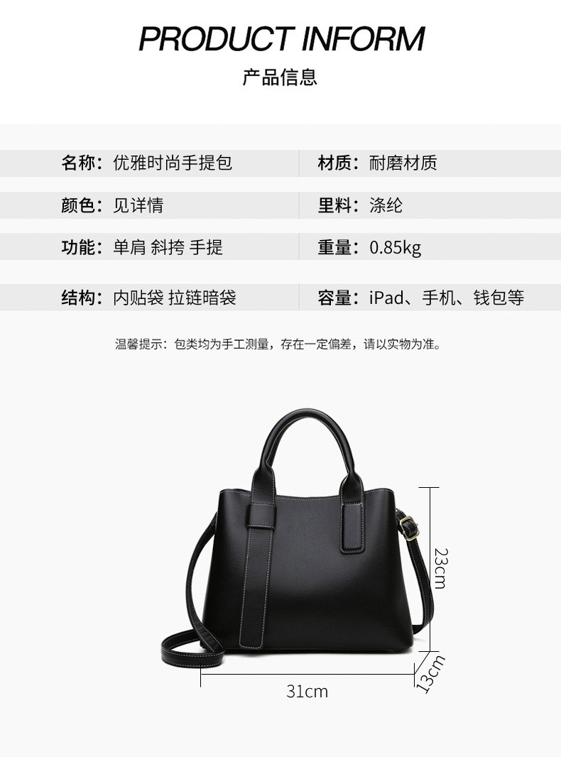 Chiếc túi xách này có kiểu dáng hiện đại, phù hợp cho việc đi làm hay dạo phố. Thiết kế túi rộng rãi giúp bạn đựng vừa nhiều vật dụng cá nhân cần thiết mỗi ngày. Bạn có thể dễ dàng mang trên v hoặc khoác chéo một cách thoải mái. Với phong cách đơn giản và linh hoạt, đây sẽ là người bạn đồng hành tiện lợi trong mọi hoạt động thường nhật của bạn. | Tên sản phẩm: Túi Xách Nữ Phong Cách Âu Mỹ - Túi Ví Nữ | Mã sản phẩm: A5851 - Giá: 870.000đ | Mã nhà sản xuất: BADM-G03Hình ảnh sản phẩm