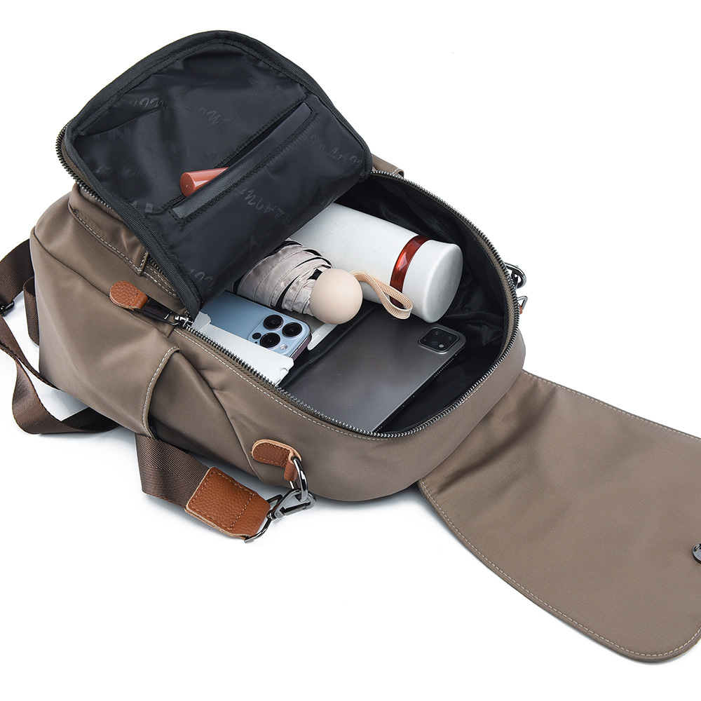 Ba lô nữ dành cho các hoạt động hằng ngày và du lịch. Sản phẩm được làm từ loại vải dệt dày có khả năng chống nước tốt, giúp bảo vệ đồ đạc bên trong khi gặp trời mưa. Thiết kế hai qu đeo thoải mái, kiểu dáng mới phù hợp với thời trang hiện nay. Bạn có thể dùng để đựng sách vở, máy tính bảng và các vật dụng cá nhân khi đi làm, đi học hay dạo chơi. | Tên sản phẩm: Túi Đeo Vai Nữ Chống Nước - Túi Ví Nữ | Mã sản phẩm: A6019 - Giá: 680.000đ | Mã nhà sản xuất: BADM-G02Hình ảnh sản phẩm