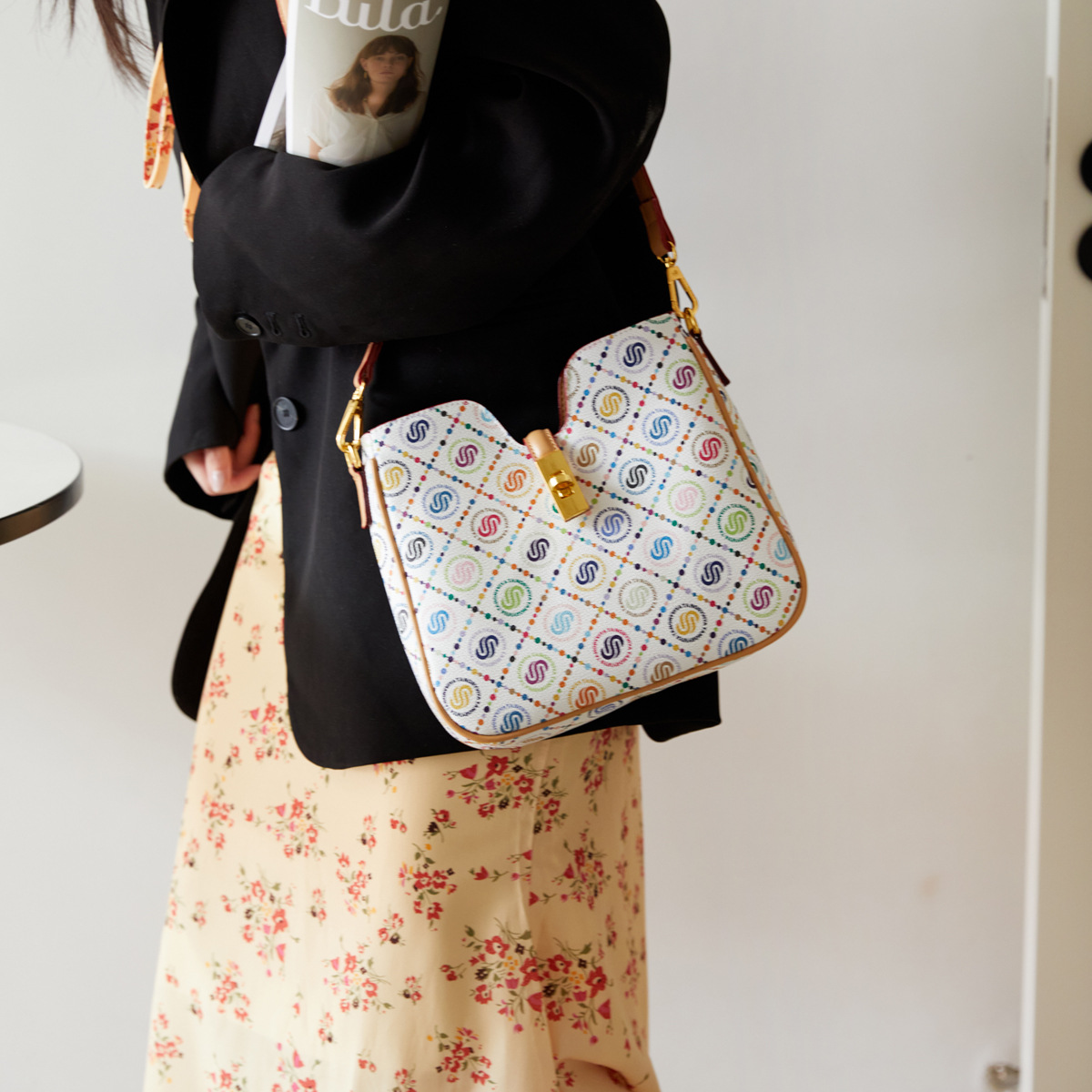 Túi xách dáng đeo chéo và khoác v này có kiểu dáng hợp thời, phù hợp cho cả đi làm và dạo phố. Điểm nhấn nổi bật là phần in họa tiết phối màu sinh động và bắt mắt. Thiết kế rộng rãi bên trong giúp bạn dễ dàng sắp xếp các vật dụng cá nhân cần thiết mỗi ngày. Bạn có thể điều chỉnh dây đeo để đeo chéo người hoặc khoác lên v một cách thoải mái và thuận tiện. | Tên sản phẩm: Túi Xách Nữ Họa Tiết Hoa - Túi Ví Nữ | Mã sản phẩm: A6063 - Giá: 630.000đ | Mã nhà sản xuất: BADM-G02Hình ảnh sản phẩm