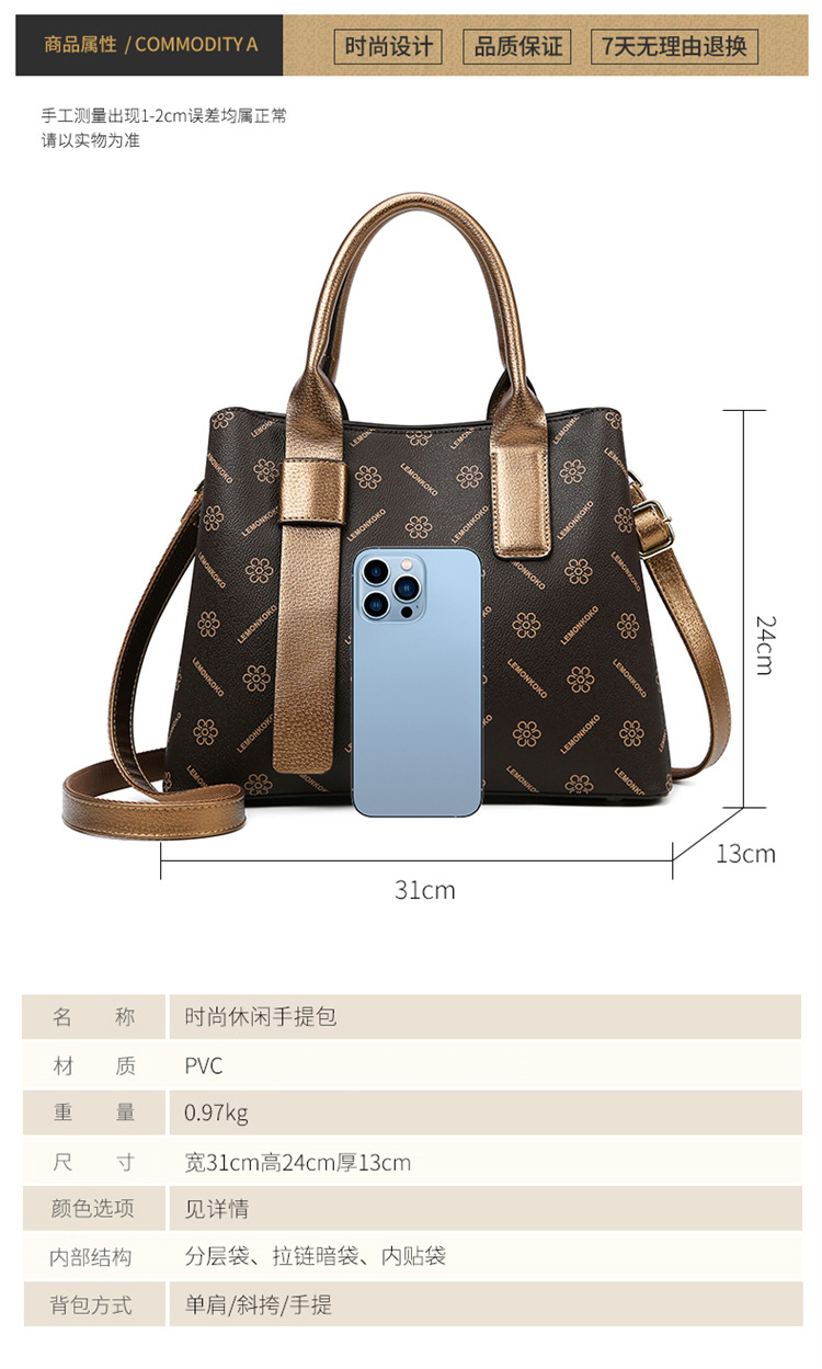 Túi xách tay kiểu mới với họa tiết hoa văn cổ điển, dành riêng cho phụ nữ. Thiết kế dáng túi to tiện lợi, sức chứa lớn, phù hợp cho nhiều dịp sử dụng. Bạn có thể đeo v hoặc mang chéo một cách thoải mái. Kiểu dáng đơn giản nhưng tinh tế, dễ dàng phối hợp với nhiều trang phục thường ngày. Sản phẩm đáp ứng tốt nhu cầu đi làm, đi chợ hay dạo phố. Chỉ cần cho các vật dụng cá nhân vào và xách theo bên mình. | Tên sản phẩm: Túi Xách Nữ Họa Tiết Hoa Trung Niên - Túi Ví Nữ | Mã sản phẩm: A6107 - Giá: 830.000đ | Mã nhà sản xuất: BADM-G03Hình ảnh sản phẩm